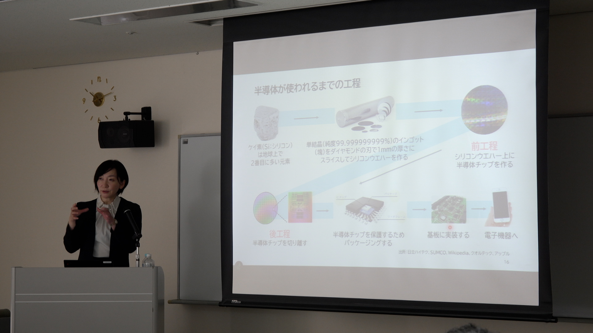 講師を務めた小峯さんは「半導体産業って、面白いんだなとか、半導体そのものでなくても広い業界で、何か自分も関わっているかもしれないし、今後も関われるような業界なんだというふうにとらえてもらえたらいいと思う」と話していました。