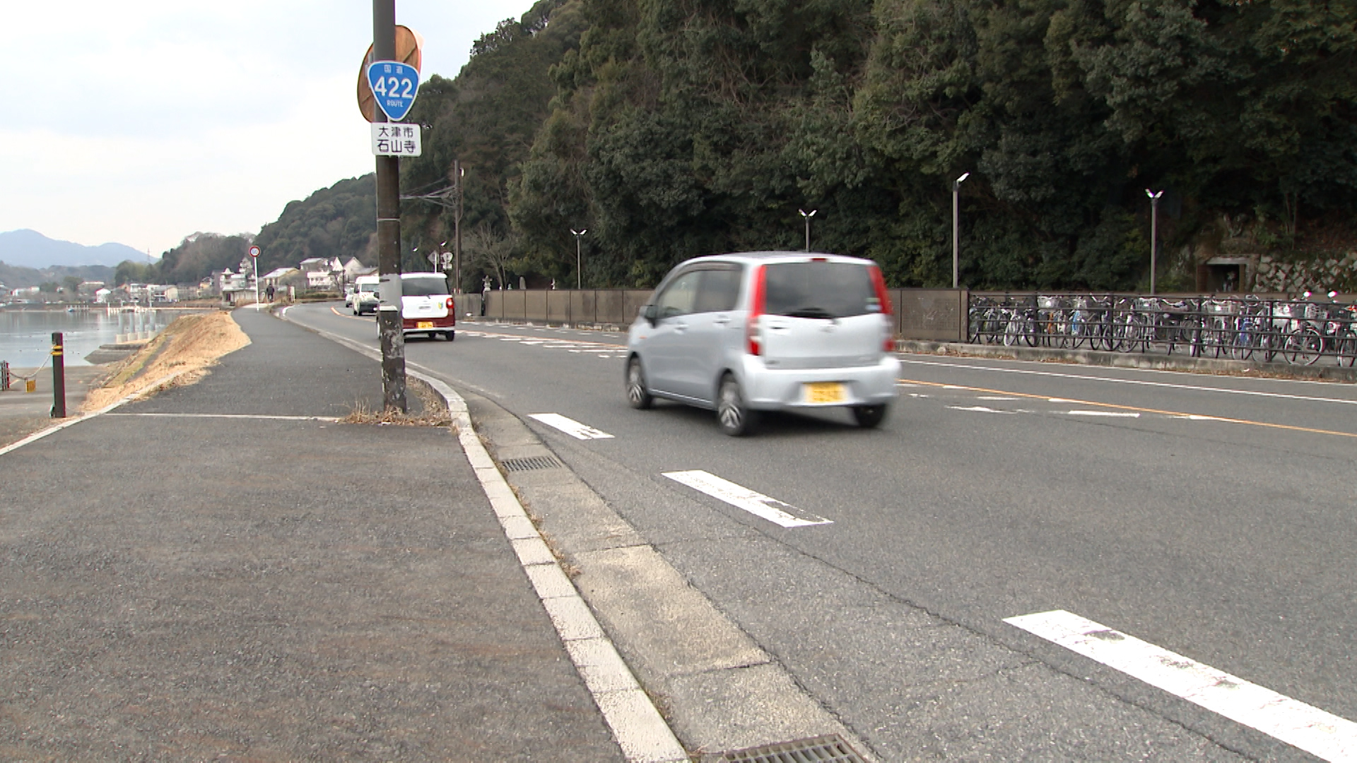 11日、大津市の国道で普通乗用車が案内標識の支柱に衝突する事故があり、運転していた87歳の男性が死亡しました。