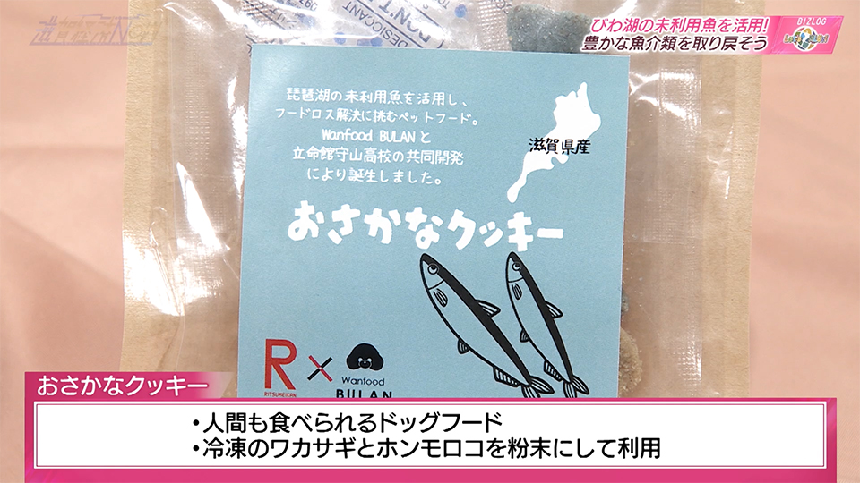 びわ湖と、びわ湖に根差す暮らしに向けたゴール・MLG’sのうち、今回は2番目のゴール「豊かな魚介類を取り戻そう」を紹介。守山市の専門店が高校生と開発したペットフード「おさかなクッキー」にスポットを当てる