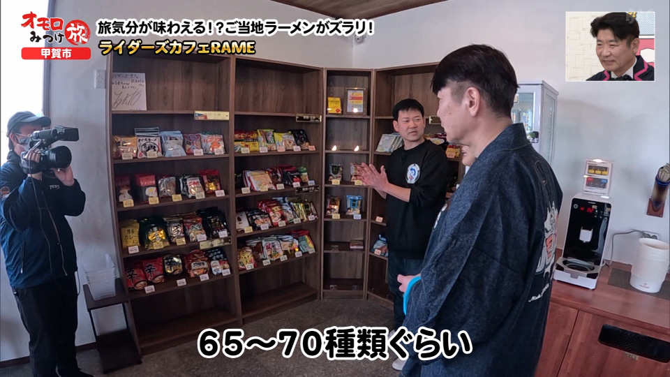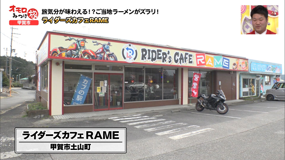県内外からバイク好きが集まる人気の「ライダーズカフェRAME」へ。 店内には全国から集めた「ご当地のとある食べ物」がずらり…旅気分が楽しめます!