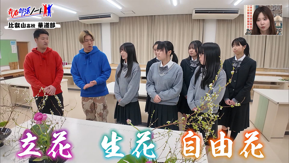 滋賀県住みます芸人「ノーサイン」の2人が、 若者の青春を応援する新コーナー「青春部活ノート」。第1回は「比叡山高校・華道部」にお邪魔しました。