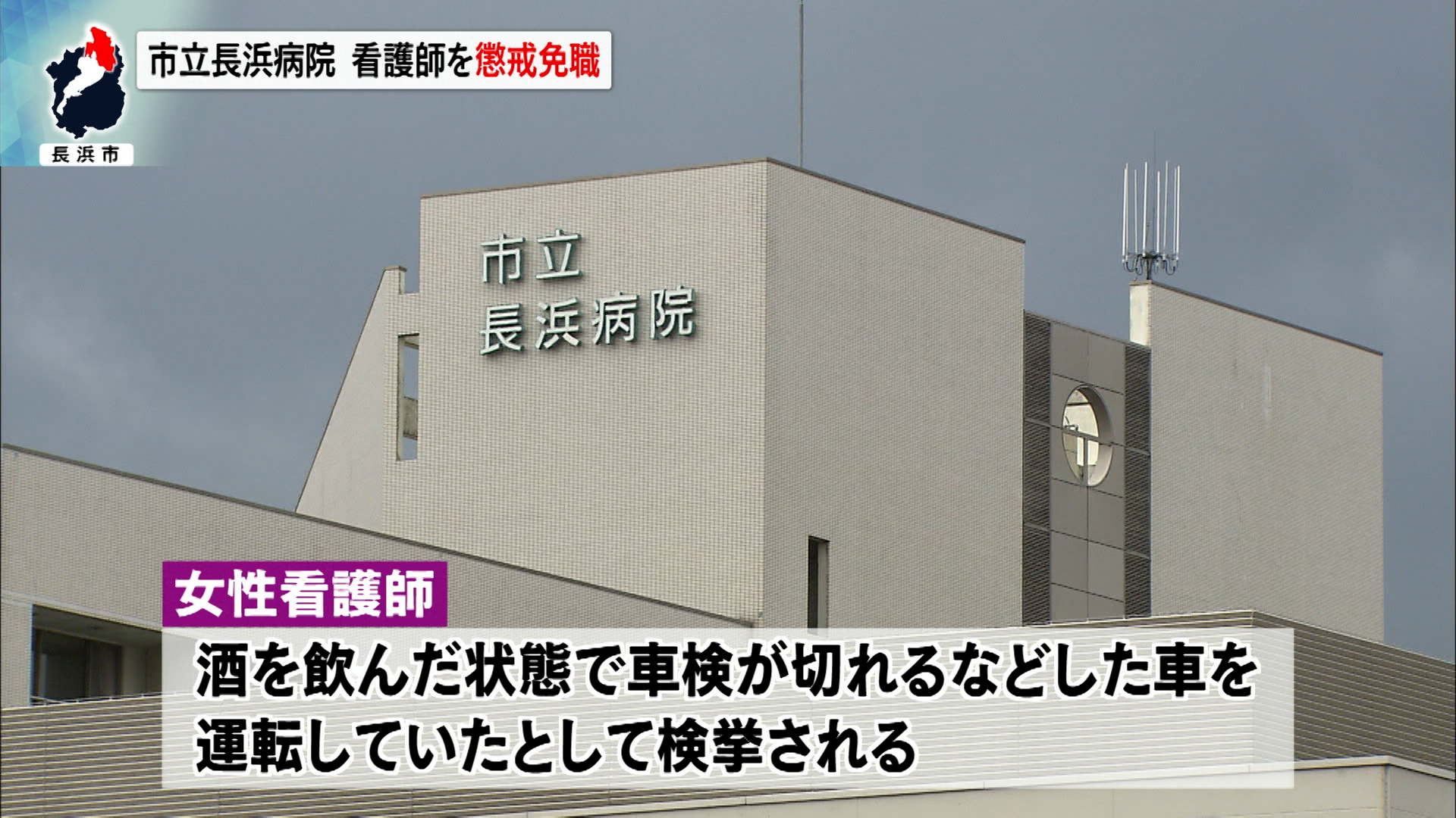 29日付で、懲戒免職処分となったのは、市立長浜病院の56歳の女性看護師です。長浜市病院事業によりますと、女性看護師は9月18日夜、市内で自分の車を運転し、事故に遭った際、酒を飲んだ状態で、車検が切れるなどした車を運転していたとして警察に検挙されました。