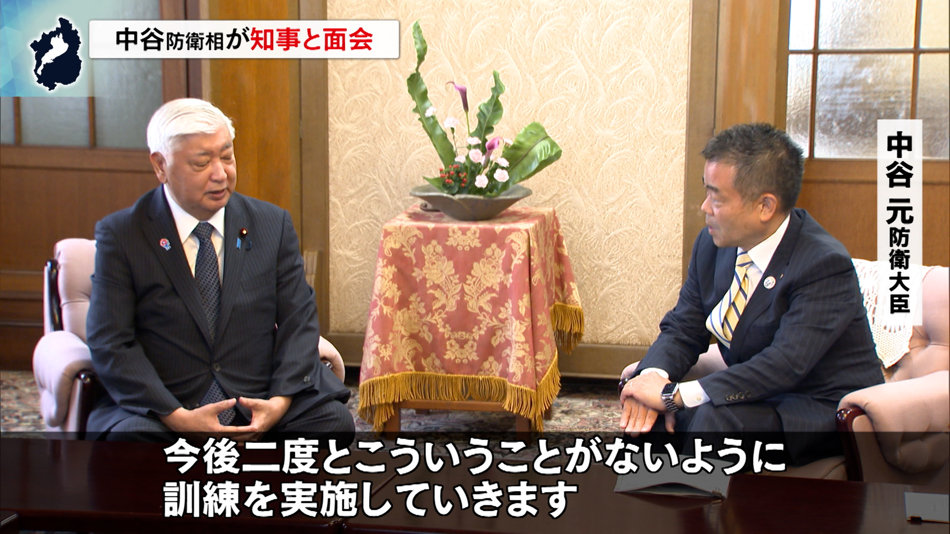 中谷防衛相が三日月知事と面会「二度とないように訓練実施していく」