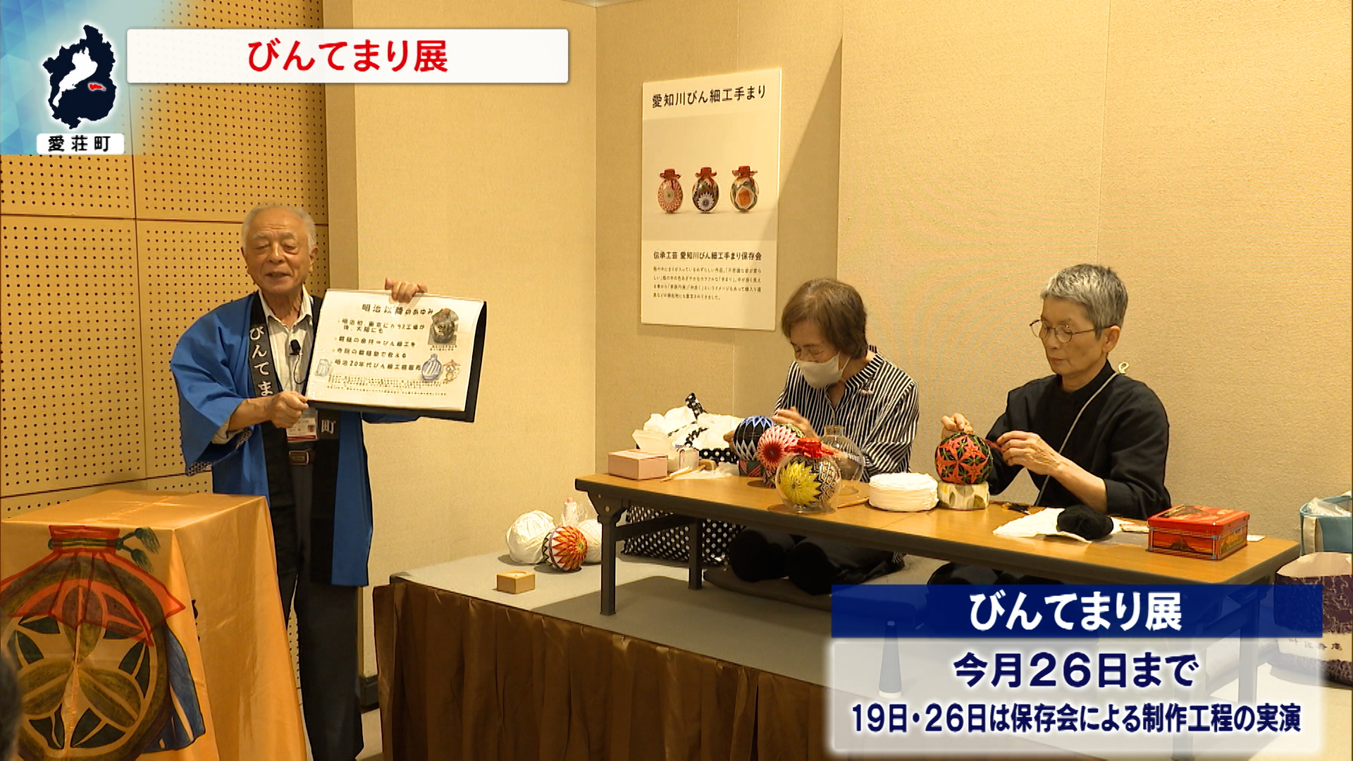 また、手まりに刺繍する体験コーナーもあり、この日は、家族連れらが楽しんでいました。企画展は10月月26日までで、19日と26日には、保存会による制作工程の実演や解説も予定されています。