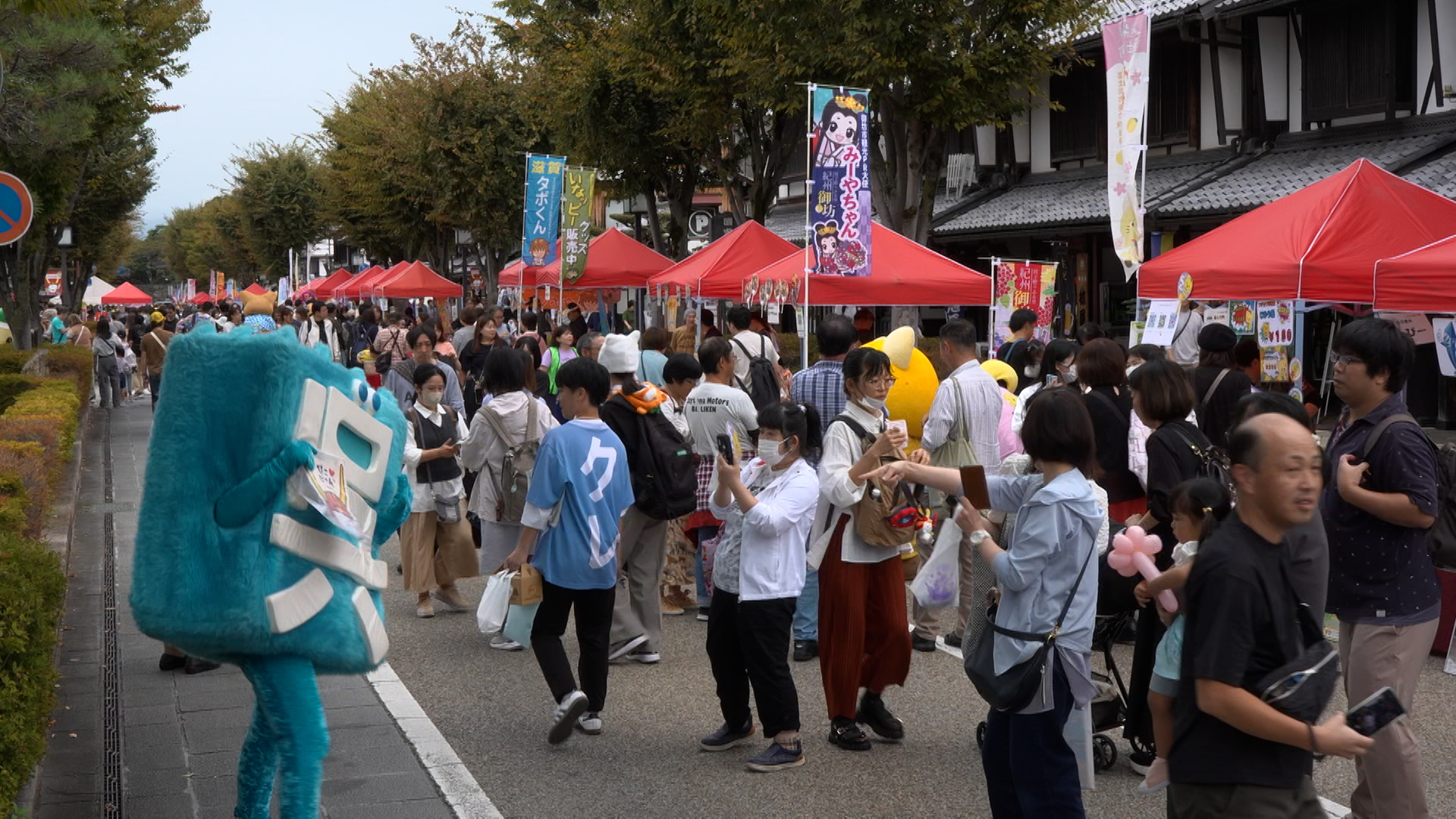 彦根城近くの夢京橋キャッスルロード周辺には、それぞれのキャラクターのブースが並び、訪れた人たちは、一緒に写真を撮ったり、サインをもらったりして楽しんでいました。
