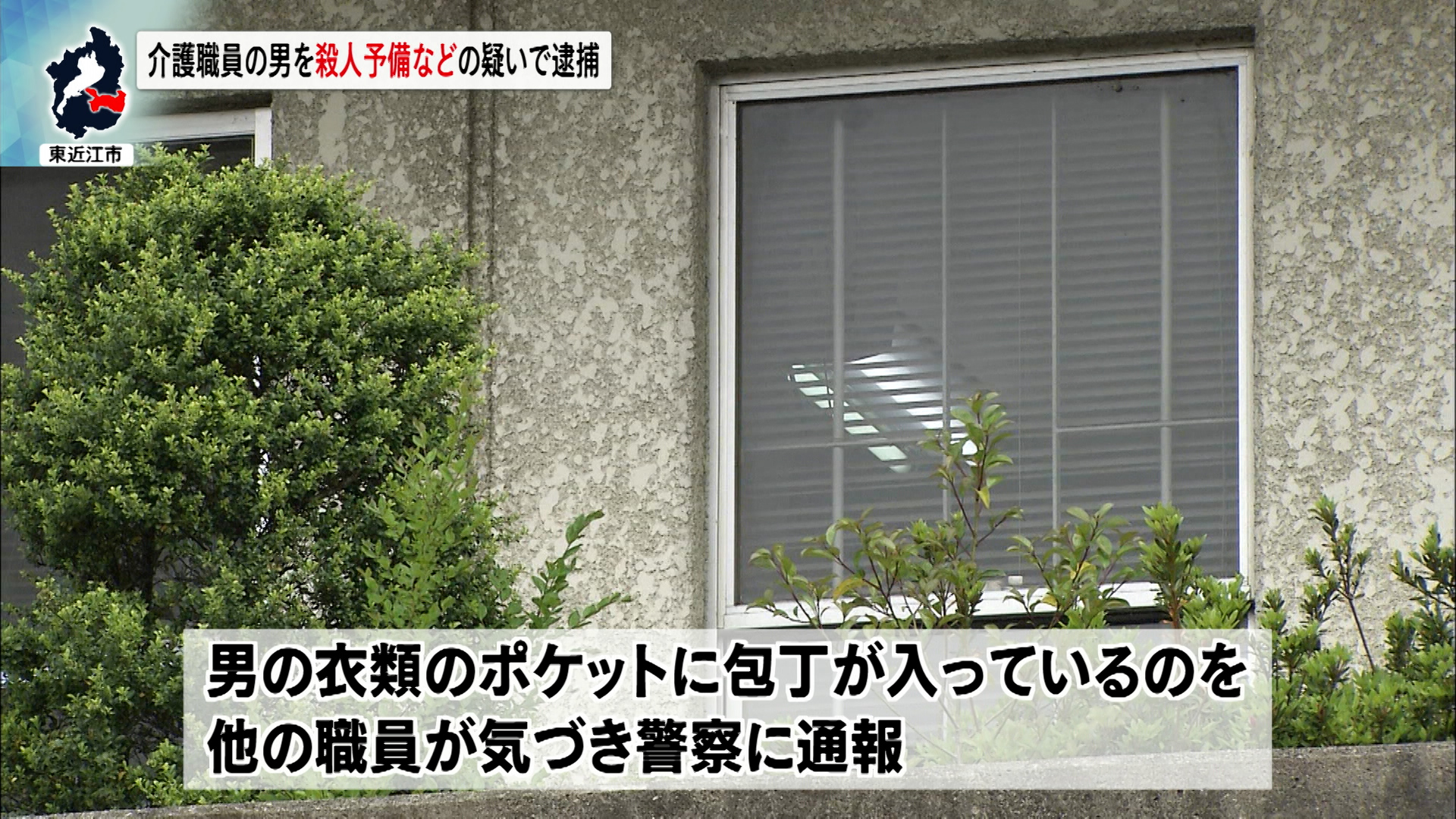 警察の調べによりますと男は、9月13日朝、自身がアルバイトとして勤める東近江市内の福祉施設で、44歳の入所者の男性を殺害しようと決め、包丁1本を隠し持ち、殺害する機会をうかがっていたなどの疑いがもたれています。