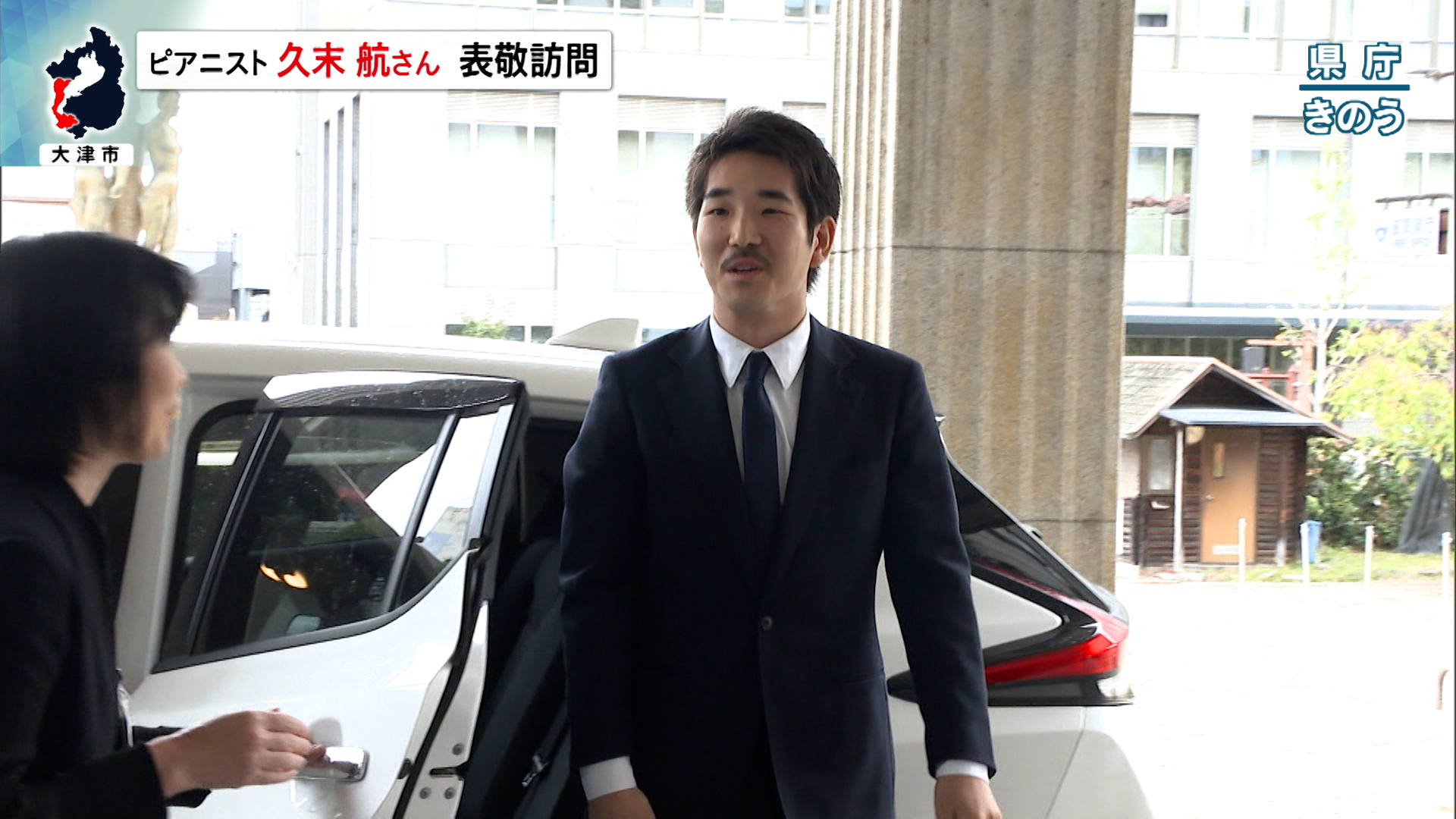 多くの職員に出迎えられ、県庁に到着したのは、大津市出身のピアニスト・久末航さん(31歳)です。