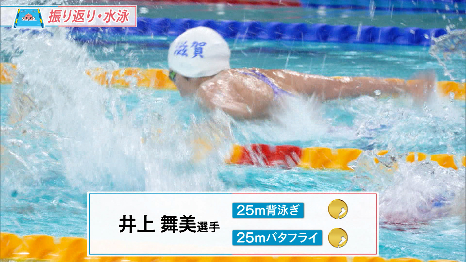 東京大会に出場した守山市の井上舞美選手も、25メートル背泳ぎ、25メートルバタフライともに金メダル。