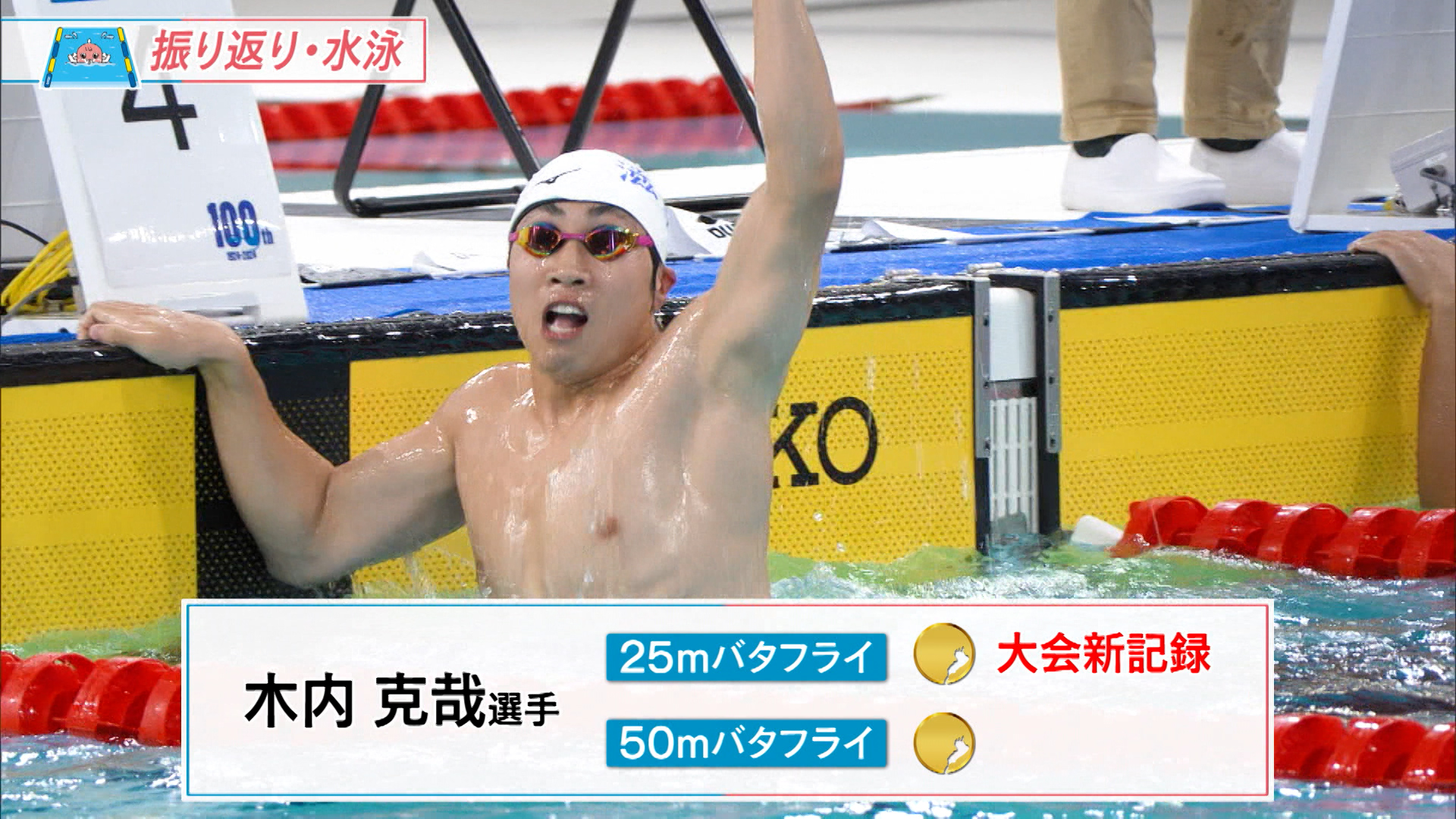 次世代のパラリンピアンも活躍です。18歳の木内克哉選手は、25メートルバタフライで大会新記録の金メダル。50メートルバタフライでも金メダルです。