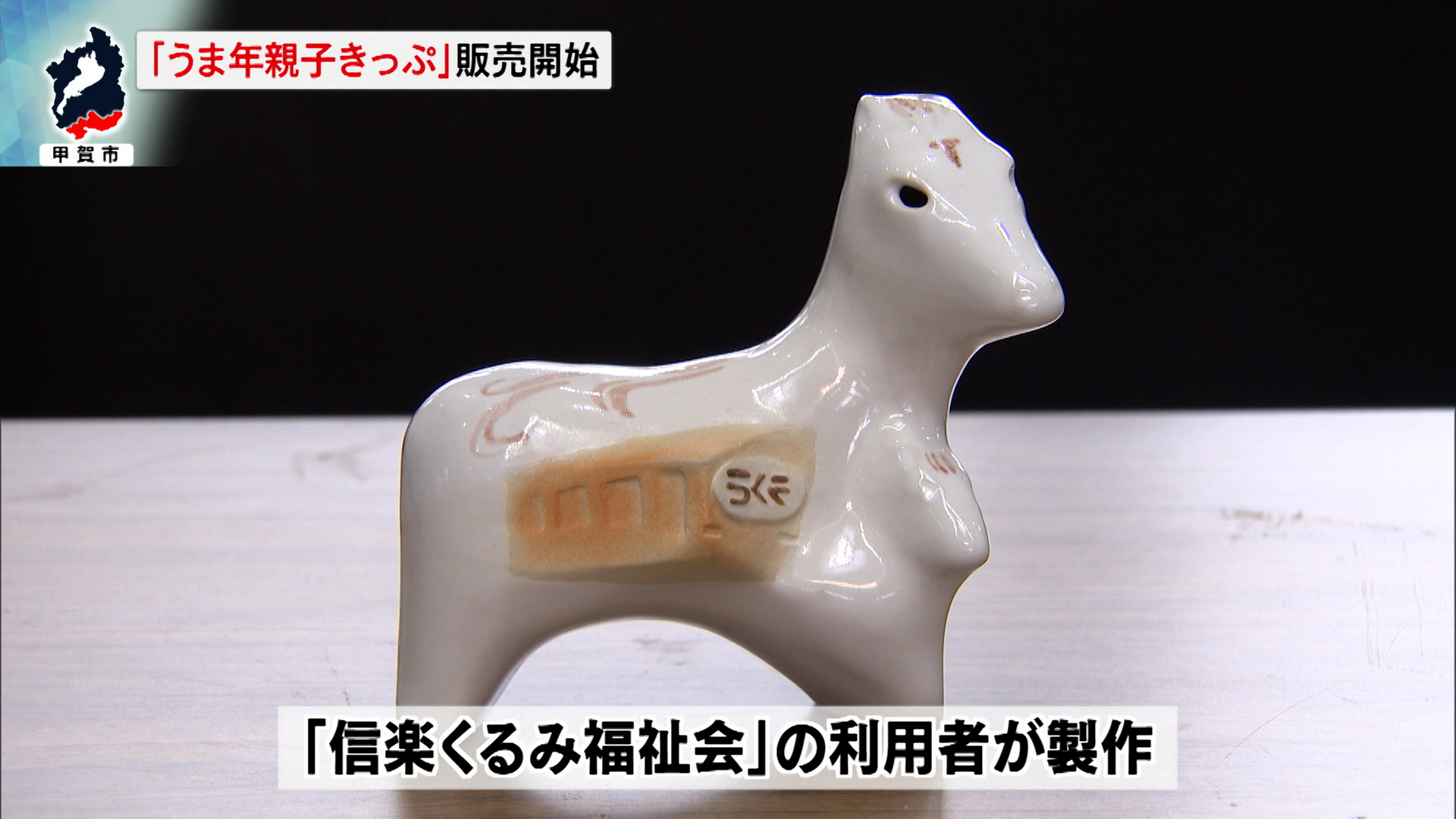 「うま年親子きっぷ」は、大人1人・小学生1人の信楽駅から貴生川駅間の往復乗車券と、信楽焼の置き物がセットになっています。