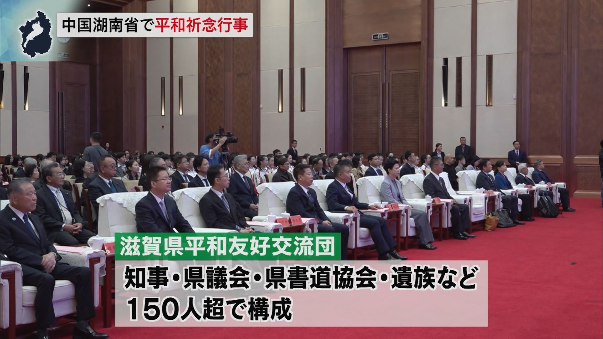 今回、湖南省を訪問したのは、三日月知事をはじめ、滋賀県議会や書道協会、戦死者の遺族らで構成された150人を超える県の平和友好交流団です。