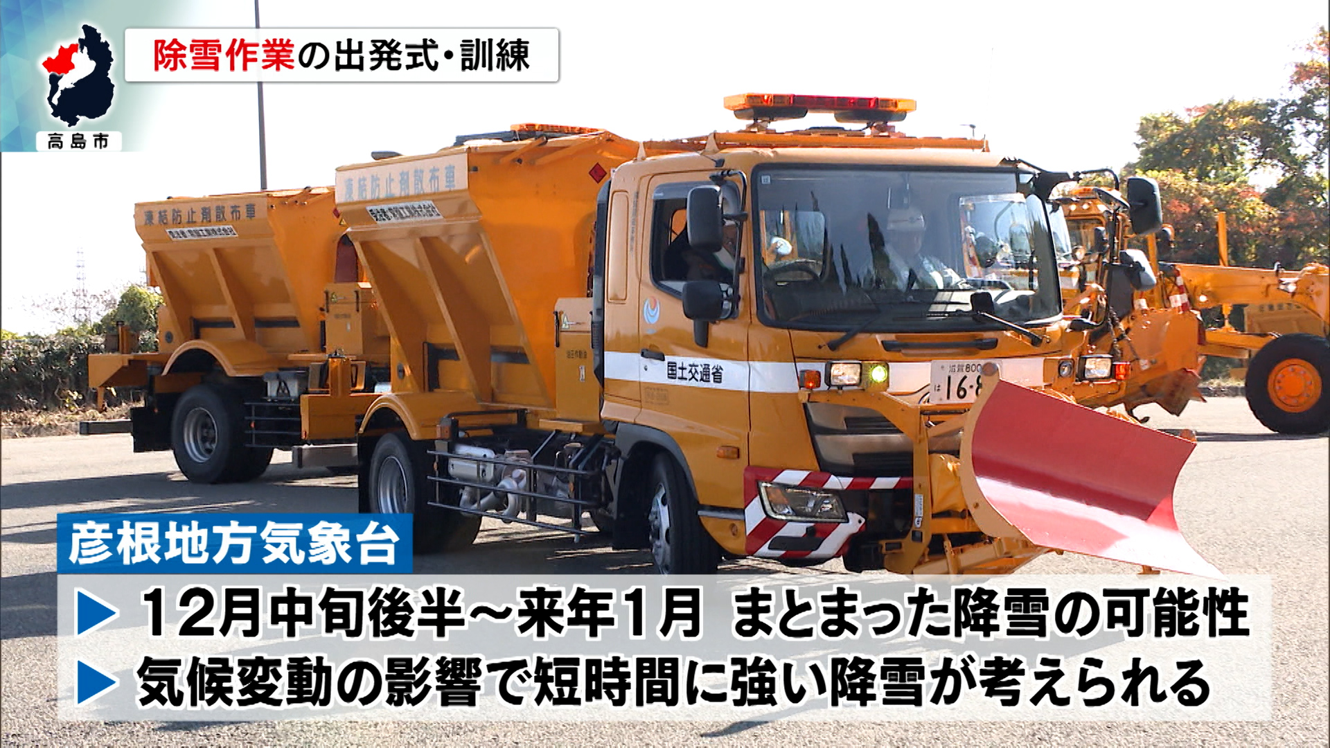 高島警察署の本田利弘署長は「一致協力して交通の安全と円滑を図りたい」と力を込めました。作業員たちは、除雪作業や凍結防止作業を行う車両に乗ってサイレンを鳴らし、ライトを点灯するなどして正常に機能することを確認していました。