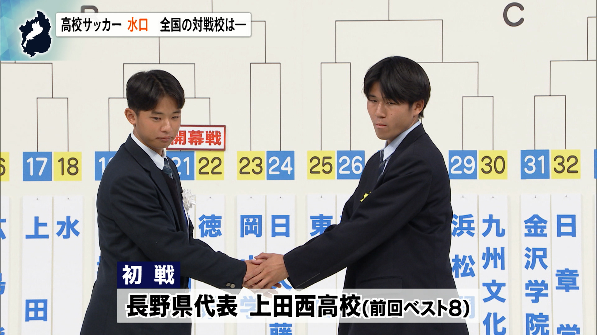 抽選の結果、水口高校の初戦の相手は、前回大会ベスト8の長野県代表・上田西高校に決まりました。