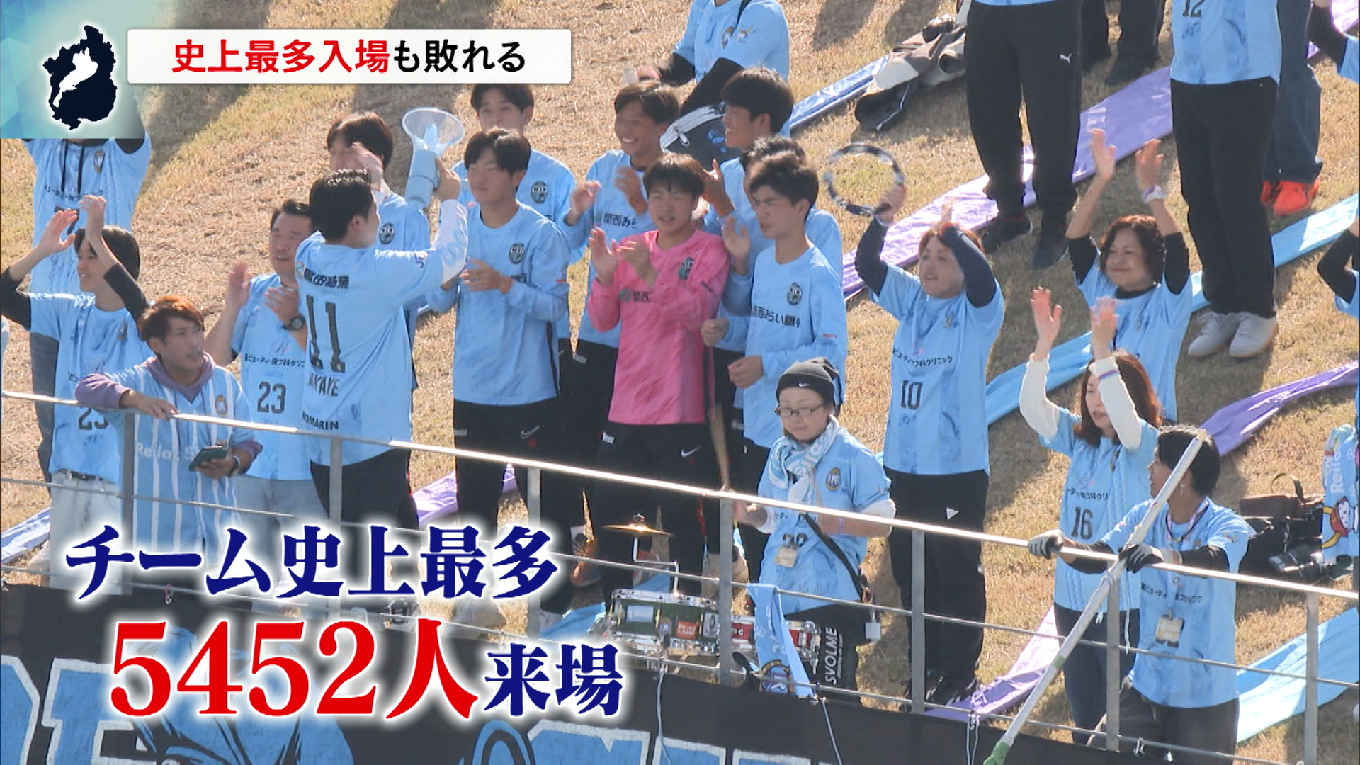 Jリーグ入れ替え戦を戦うJFLの2位が確定し、チーム史上最多となる5452人のサポーターが詰めかけたホームでのリーグ最終戦。