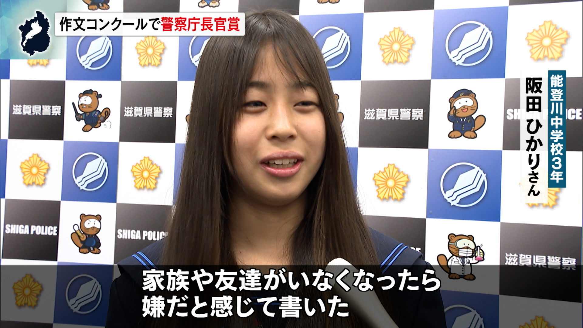 「大切な命を守る」作文コンクール 東近江市の中学生が警察庁長官賞