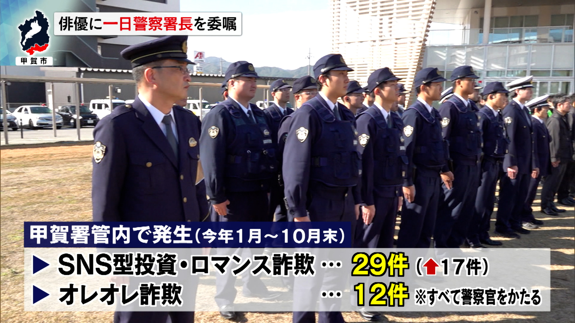 甲賀署によりますと、管内では1月から10月末までにSNS型投資詐欺とロマンス詐欺が合わせて29件発生し、去年の同時期の12件から大きく増えています。