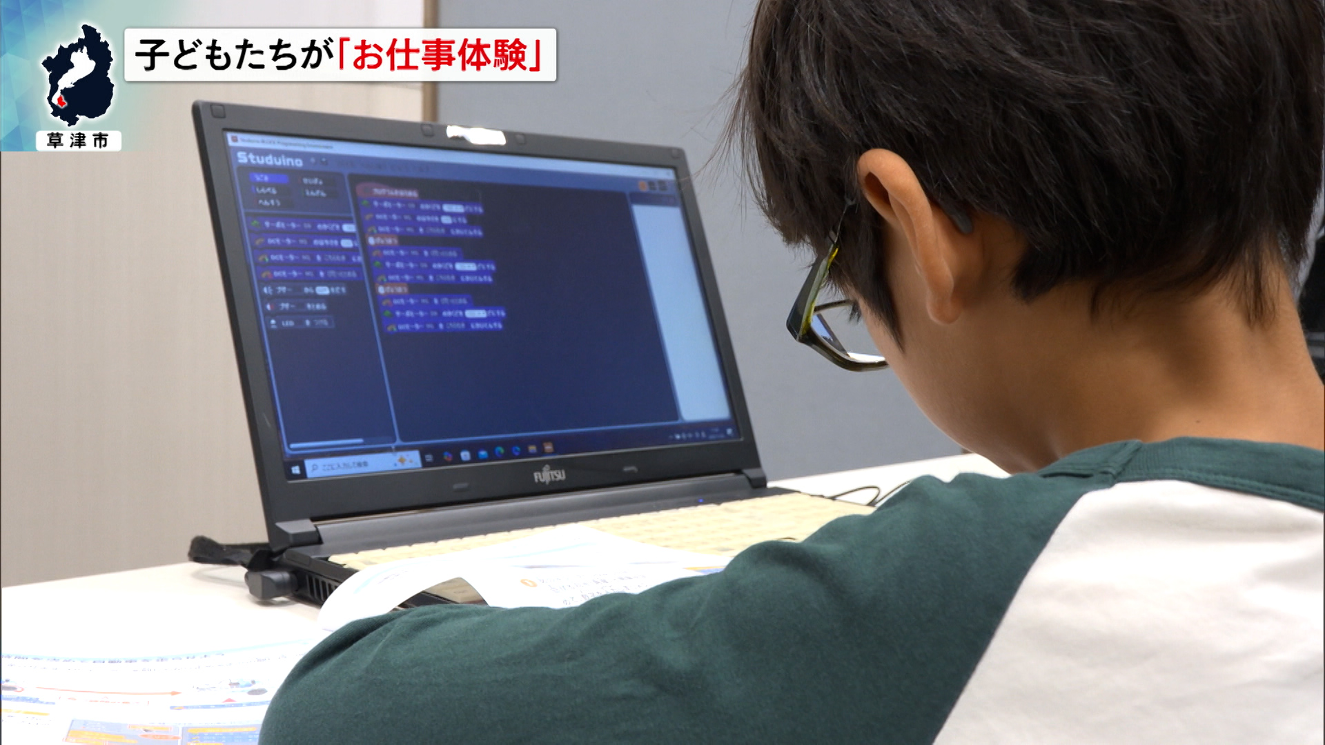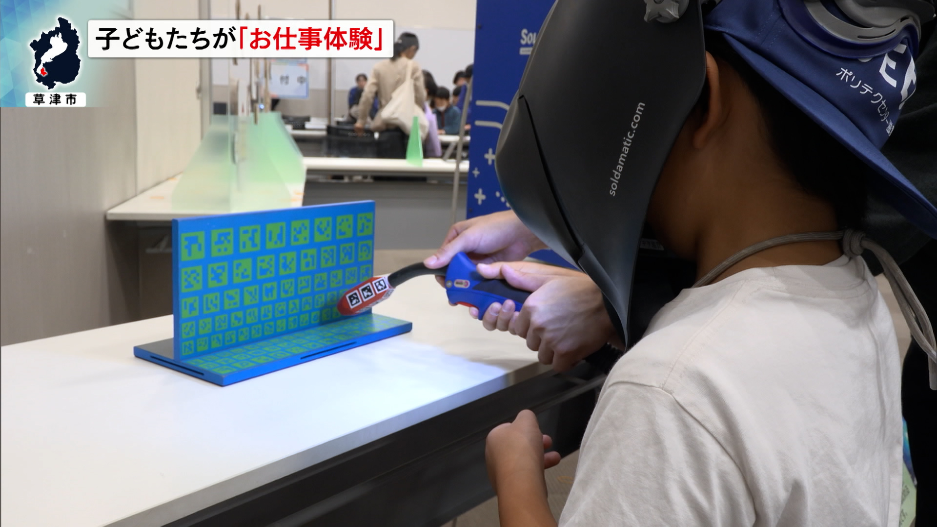 29日、イオンモール草津で開かれた「ハロトレ・みらいしごと博」は、子どもたちを対象に、「大人になったらなりたい職業」の選択肢となるものづくりなどの分野を知ってもらおうと滋賀労働局が開いたものです。会場に設置されたそれぞれのブースでは、子どもたちが、様々なものづくりを体験しました。