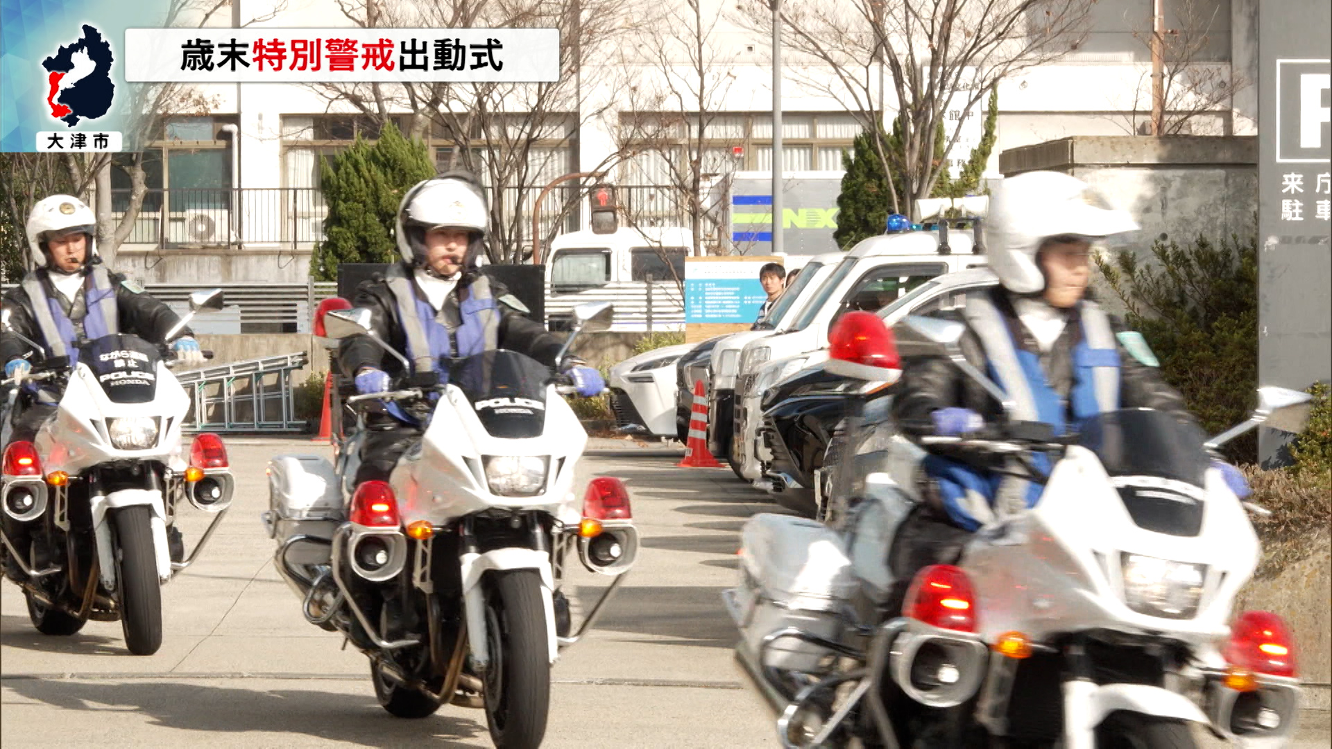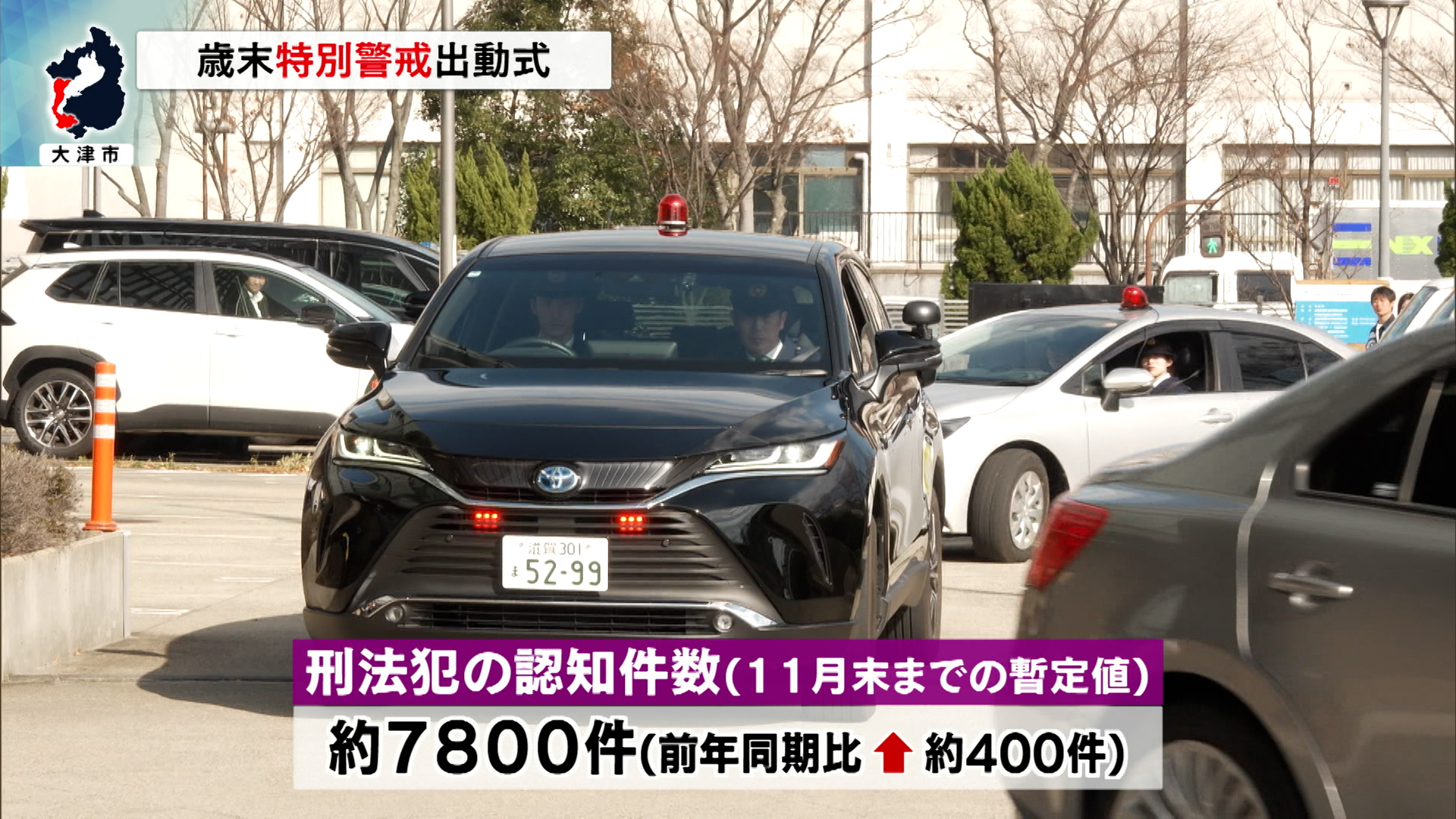 このうち県警本部では、大津署と大津北署をあわせた合同の「歳末特別警戒出動式」が行われ、警察官をはじめ、防犯協会の会員やボランティアのパトロール隊員など約80人が参加しました。
