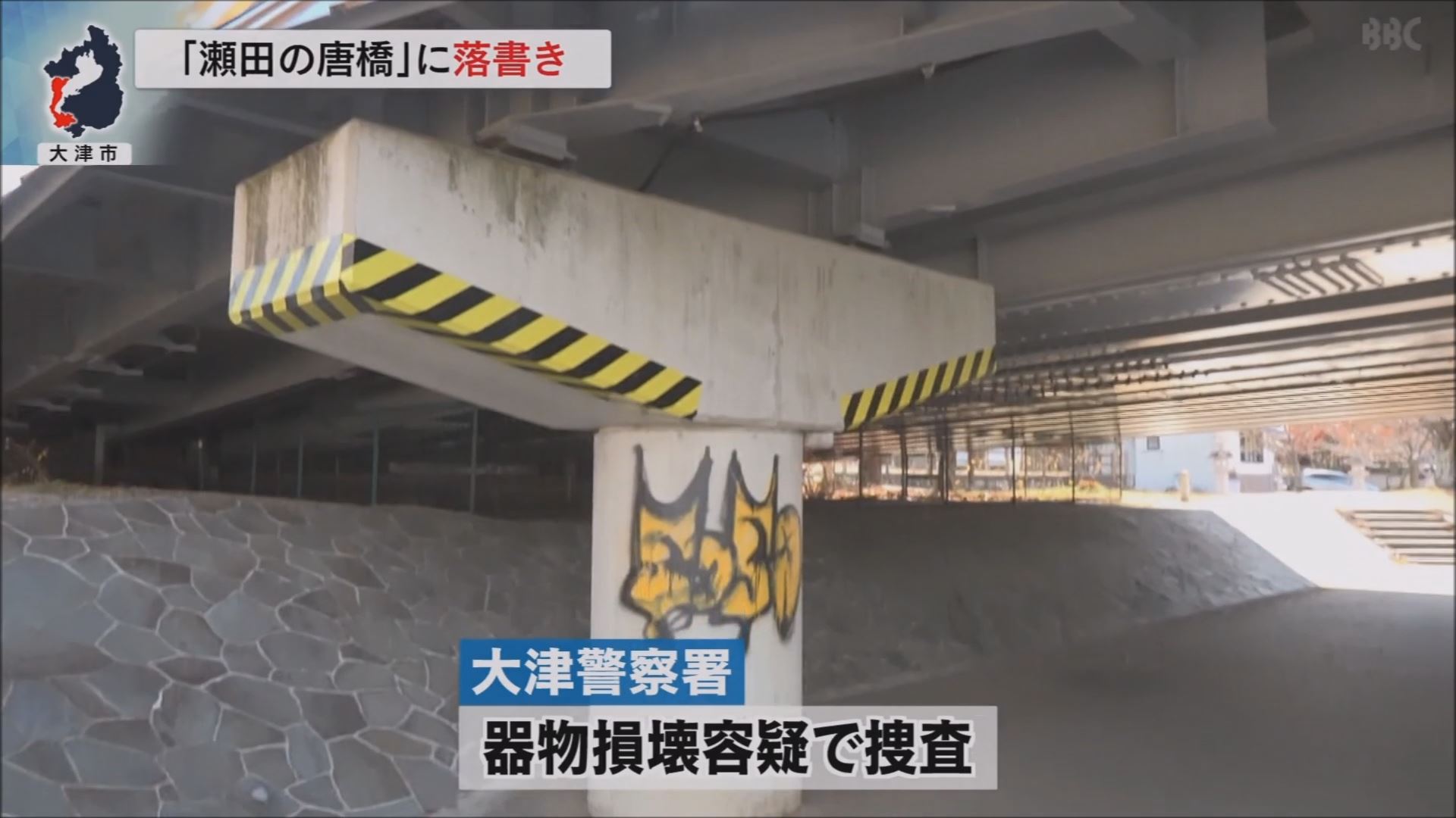 11月21日以降、住民らから110番通報を受け、大津警察署は器物損壊容疑で捜査を進めています。県大津土木事務所によりますと、唐橋への落書きが5カ所で確認されたとし、警察への被害届提出を検討していて、今月中に対応を決めるとしています。