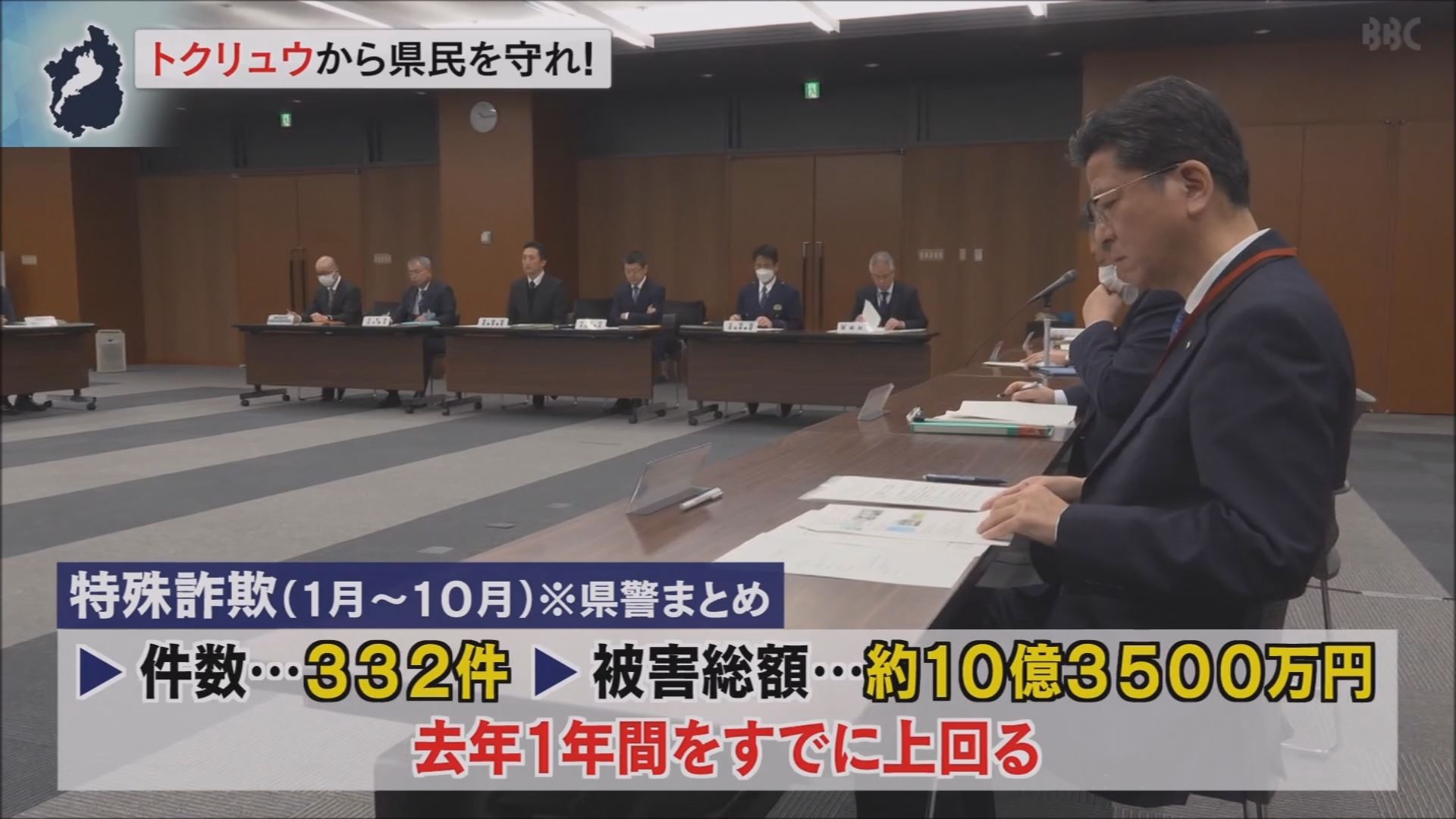 県警によりますと、県内の特殊詐欺の認知件数は、今年に入って10月末までで332件・被害総額は10億円を超えています。これは件数・被害総額ともに、去年1年間をすでに上回っています。