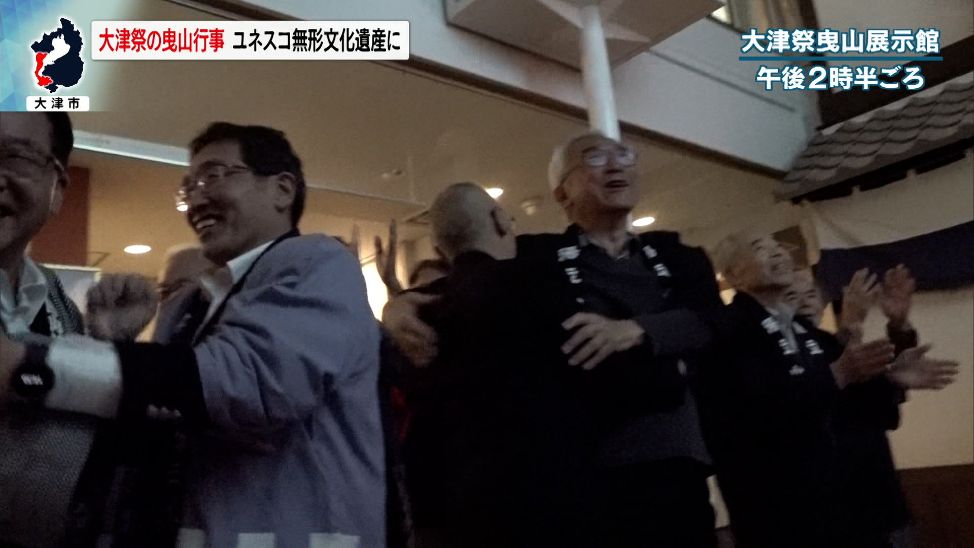 日本時間の11日午後2時半ごろ、インドで開かれたユネスコ政府間委員会で登録が正式に決定されると、大津祭曳山展示館は歓声に包まれました。