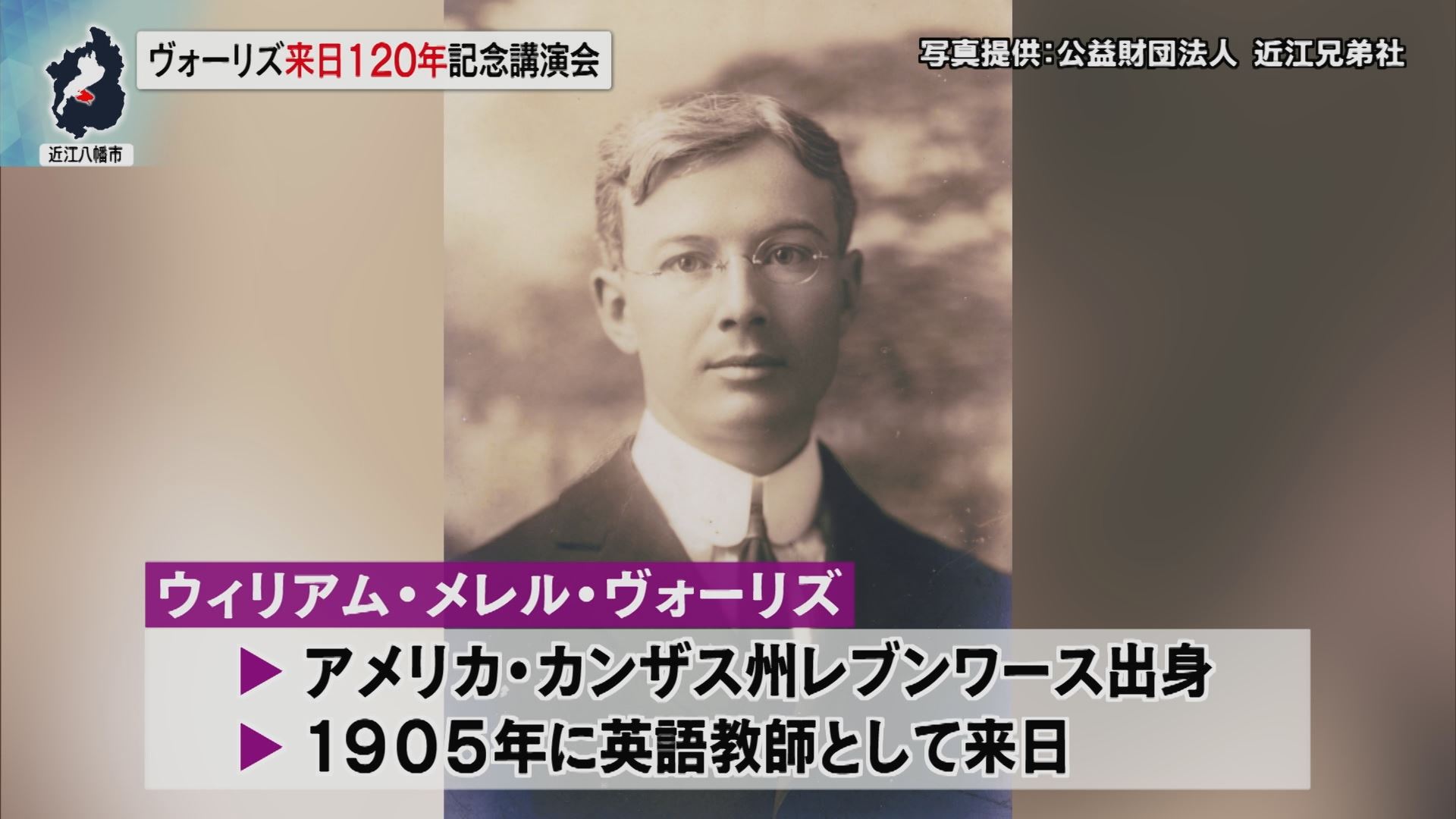 ヴォーリズ氏は、アメリカ・カンザス州レブンワース出身で、1905年に現在の八幡商業高校の英語教師として来日。