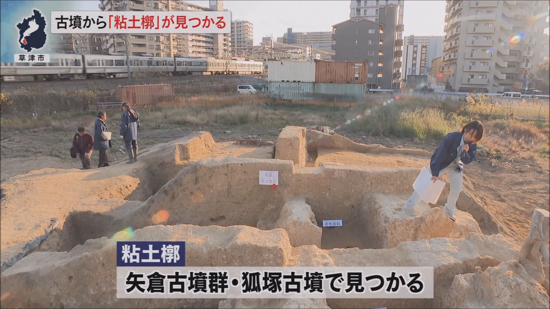 草津市・歴史文化財課の内田菜々子 文化財技師は「これだけ周りが開発されている中で、この古墳だけが残っていて、きれいに粘土槨もしっかり残っているということが調査していて感慨深い。当時それだけ大きい権力を持っている人がいた。今に至るまで発展していったということをイメージしてもらえたら。」と話していました。