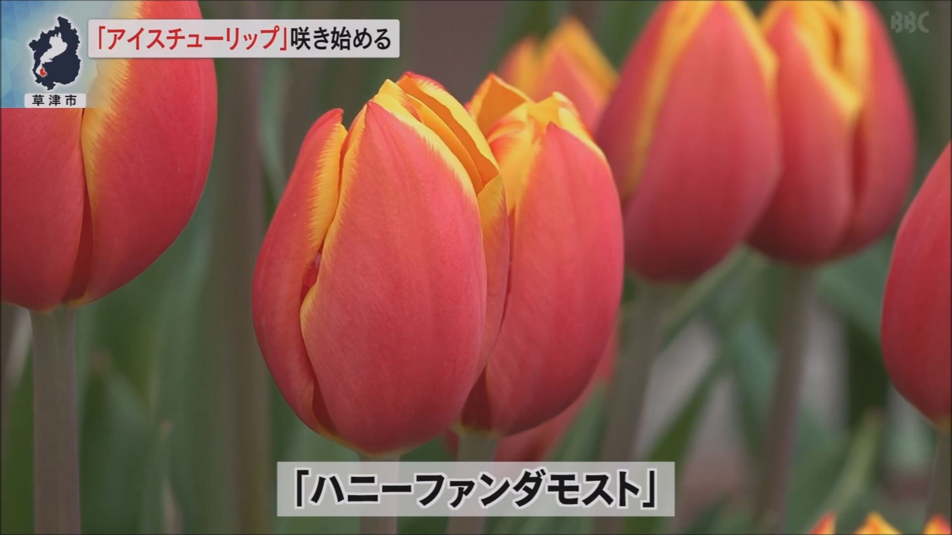 水生植物公園みずの森・植栽担当者は「寒い時期に開花することもあって、かなり花が咲く期間が長いのが特徴。色も含めて形も楽しんでもらえればと思う。冬場に咲くということで一番は雪です。本来はあり得ない春に咲くチューリップに雪化粧という。頭に雪をかぶっているのを見てもらえる。雪が降った日には当園のチューリップをぜひ見に来てほしい」と話していました。
