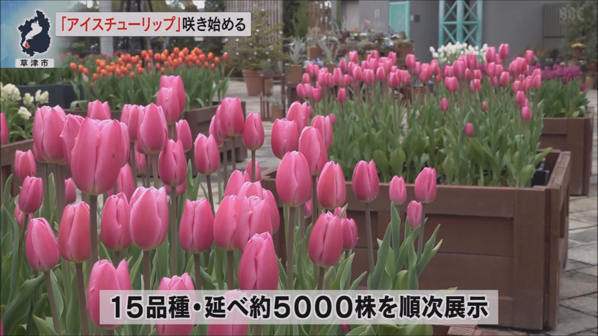 みずの森では、2月下旬まで15品種、延べ約5000株のアイスチューリップを順次展示していく予定です。