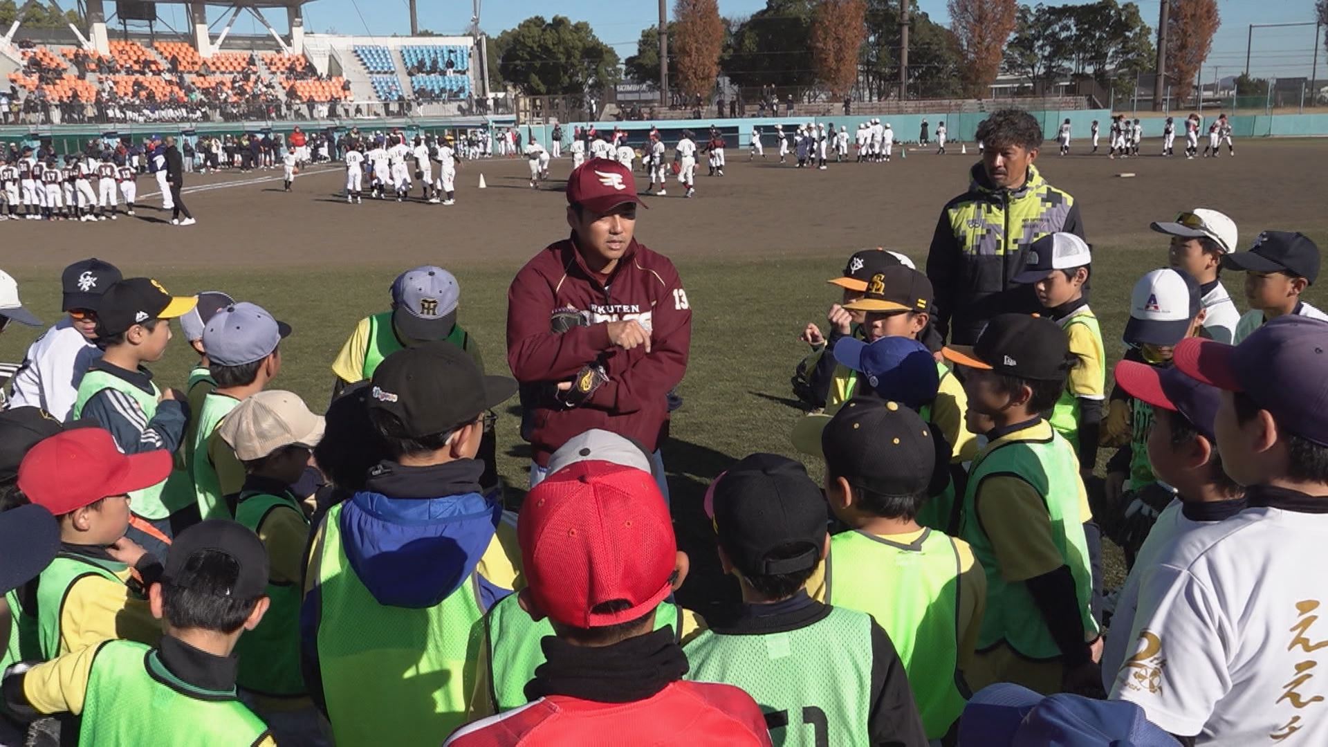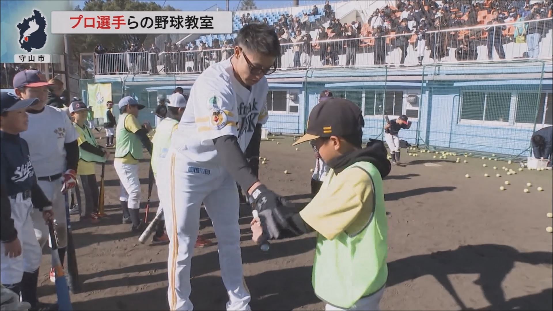 このふれあい野球教室は、プロの選手らとの交流を通じて子どもたちに野球の楽しさを知ってもらおうと、草津市のT&Sスポーツスクールが開いたものです。