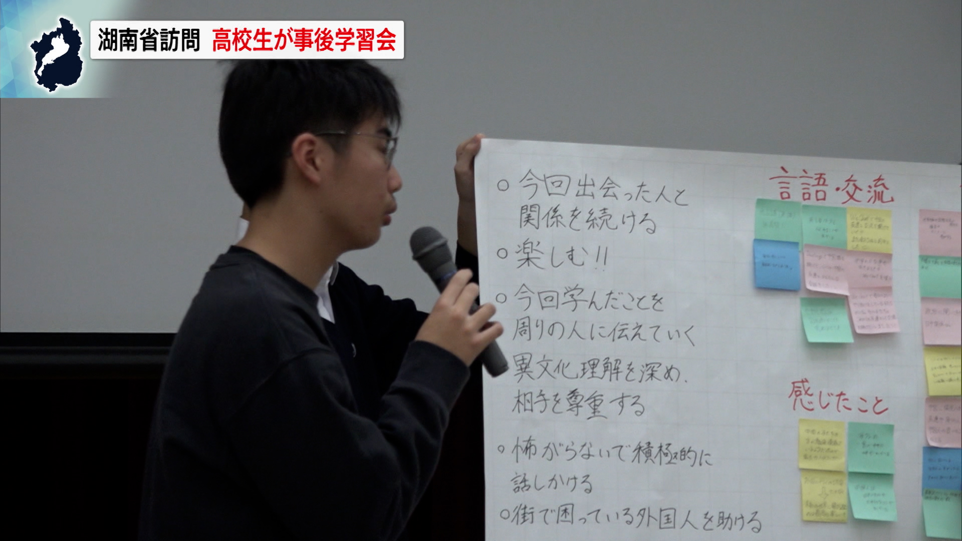 そして生徒らは、日本を好きな人が多かったなどとそれぞれのグループごとに話し合った内容を発表し今回の中国訪問の成果を共有していました。