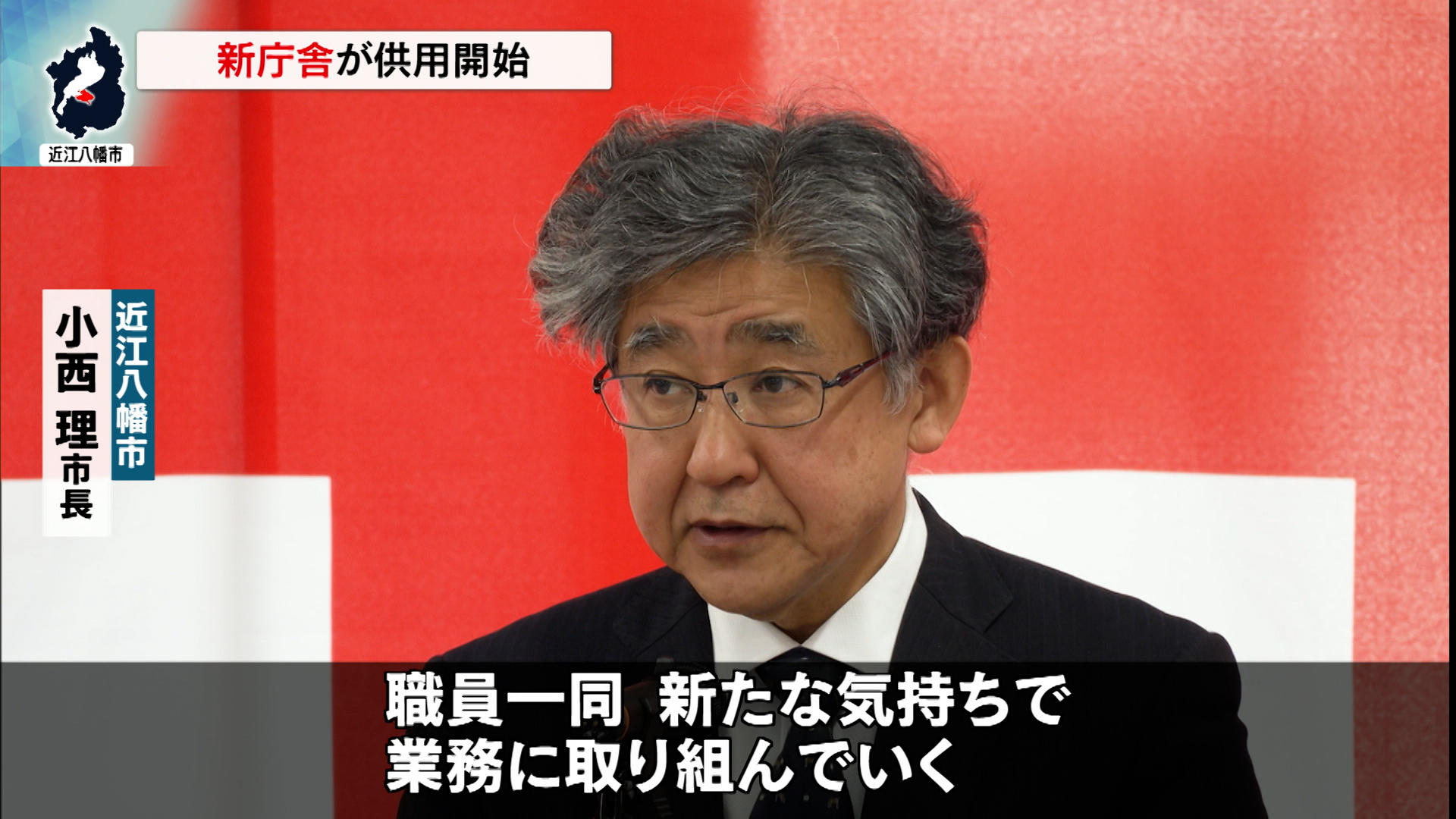 小西理市長は「(新庁舎は)行政サービスの提供に特化し、ランニングコストを抑制するコンパクトな庁舎。将来の環境変化にも柔軟に対応できる持続可能性の高い庁舎として整備を進めてきた。新庁舎の供用開始にあたり、市民サービスの向上と市政の発展のために職員一同新たな気持ちで業務に取り組んでいく」と挨拶をしました。