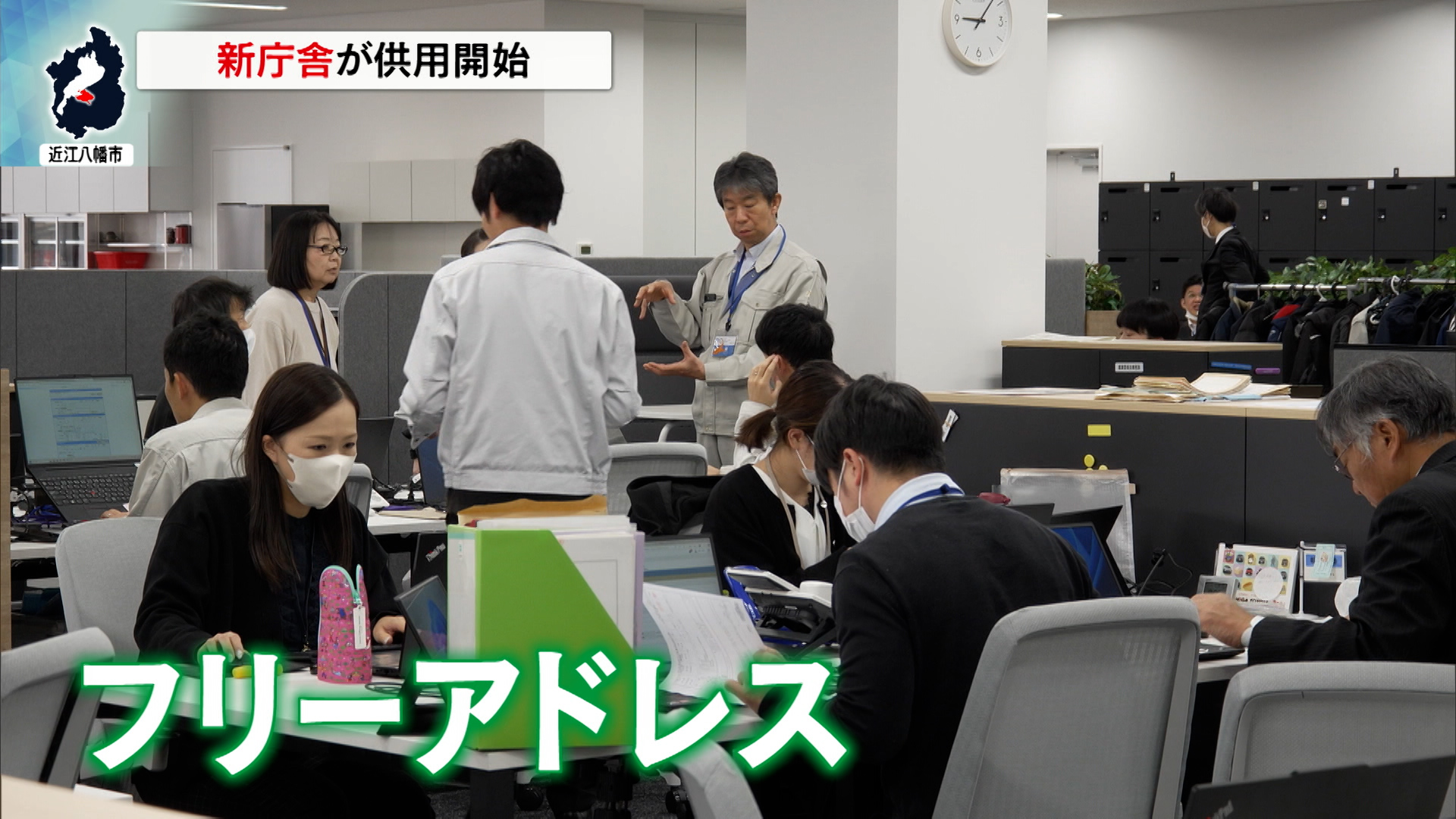 式の後、職員らはすぐに業務を開始。新庁舎は全体で職員個別の机が無く、どの机でも自由に業務ができるフリーアドレススタイルとなっています。職員らは、真新しいオフィスでまさに心機一転の仕事始めとなりました。
