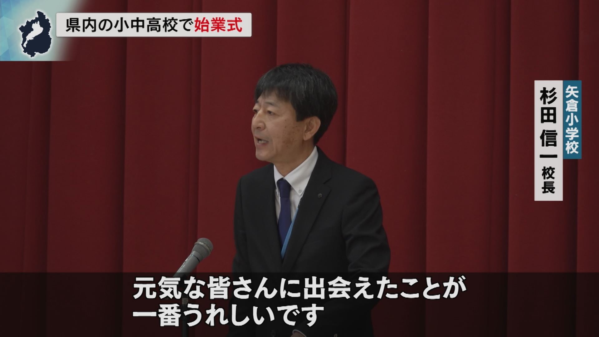 始業式では、体育館に集まったおよそ430人の全校児童に向けて、杉田信一校長が3学期を迎えた思いなどを伝えました。