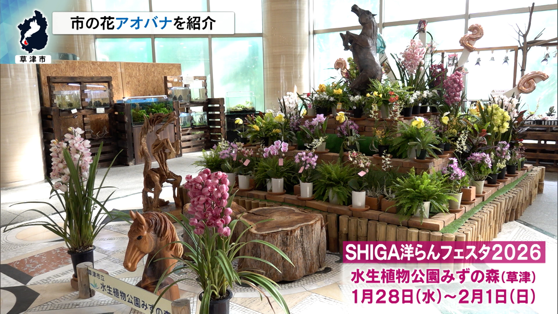 草津市の水生植物公園みずの森。今、「草津あおばな企画展」が開かれています。