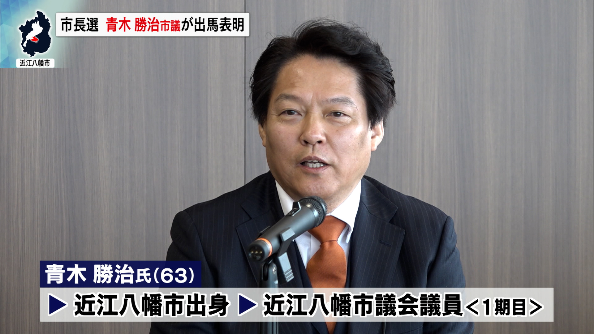 近江八幡市長選挙に無所属での出馬を表明したのは、新人で近江八幡市議会議員の青木勝治さん63歳です。青木さんは近江八幡市出身で、市の職員を経て2023年の市議会議員選挙で初当選し、現在1期目です。