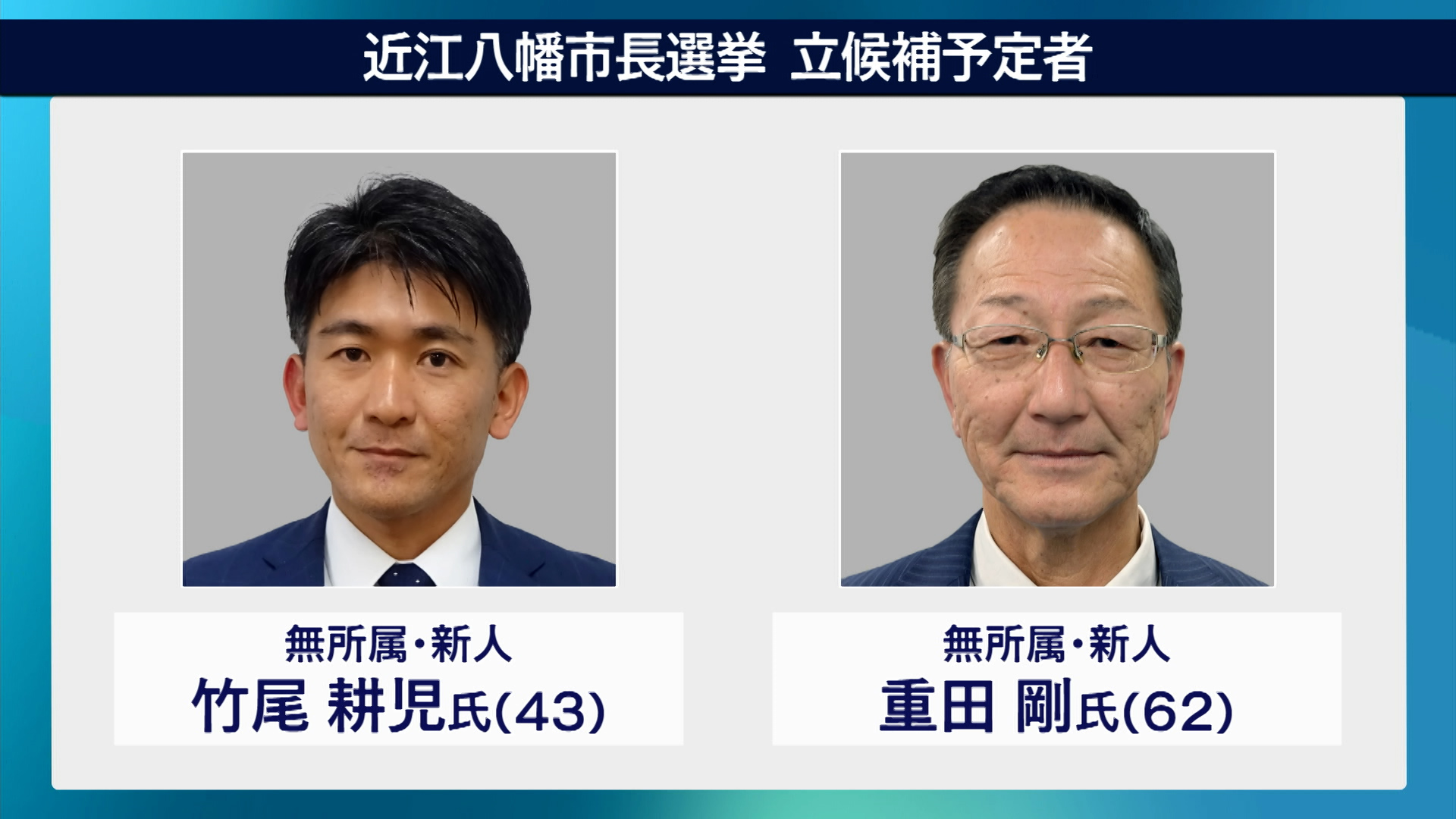 なお市長選にはこれまでに、新人で近江八幡市議会議員の竹尾耕児さんと、同じく新人で県議会議員の重田剛さんがいずれも無所属での立候補を表明しています。