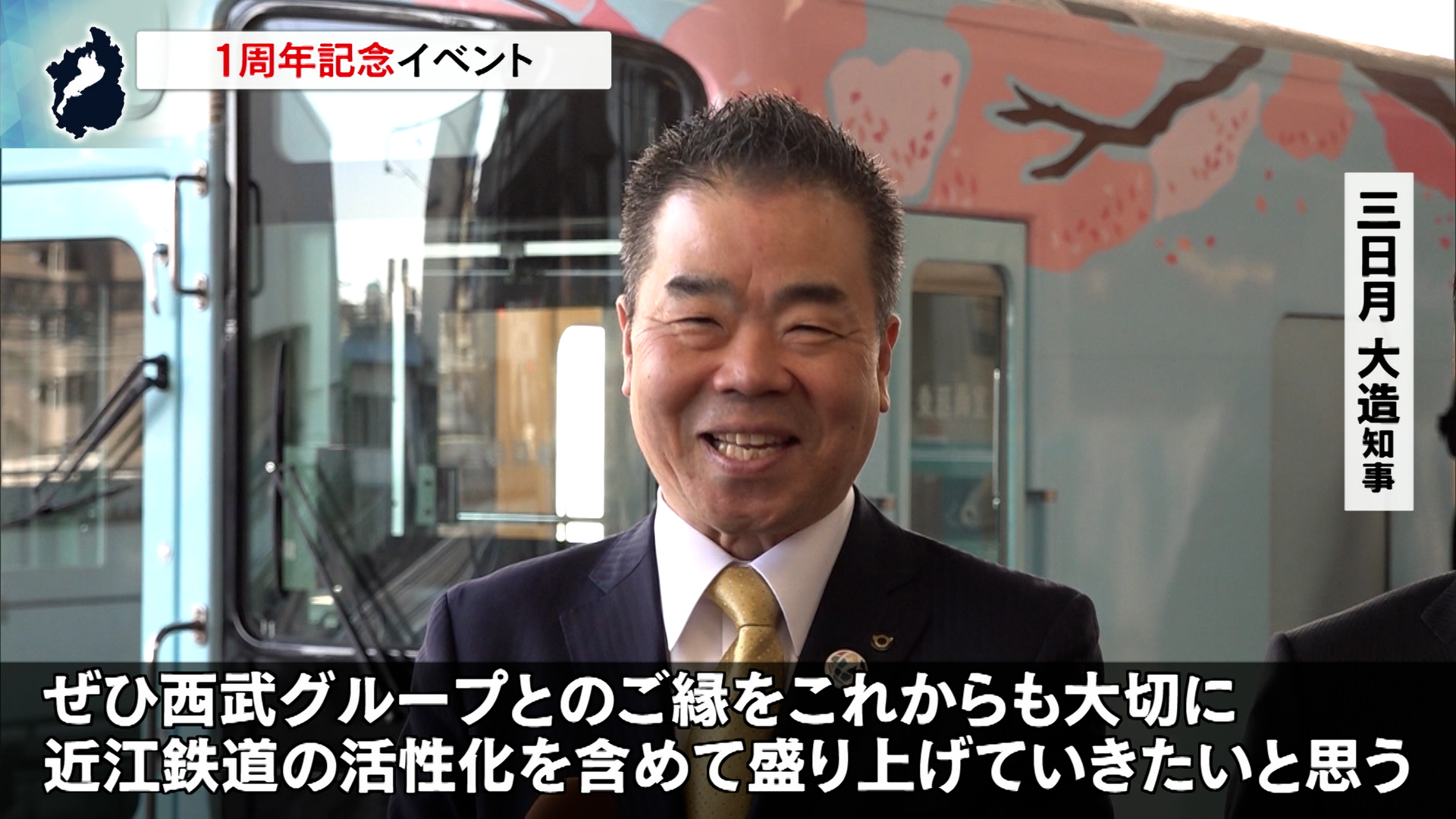 三日月知事は「秩父をイメージした列車、隈研吾さんがデザインした車両、そういったところで滋賀の食材を楽しんでいただく。また池袋駅で滋賀の物産を感じていただく。こういう企画はとってもありがたいなと思う、ぜひ西武グループさんとのご縁をこれからも大切に、近江鉄道の活性化を含めて盛り上げていきたいと思います。」と話していました。