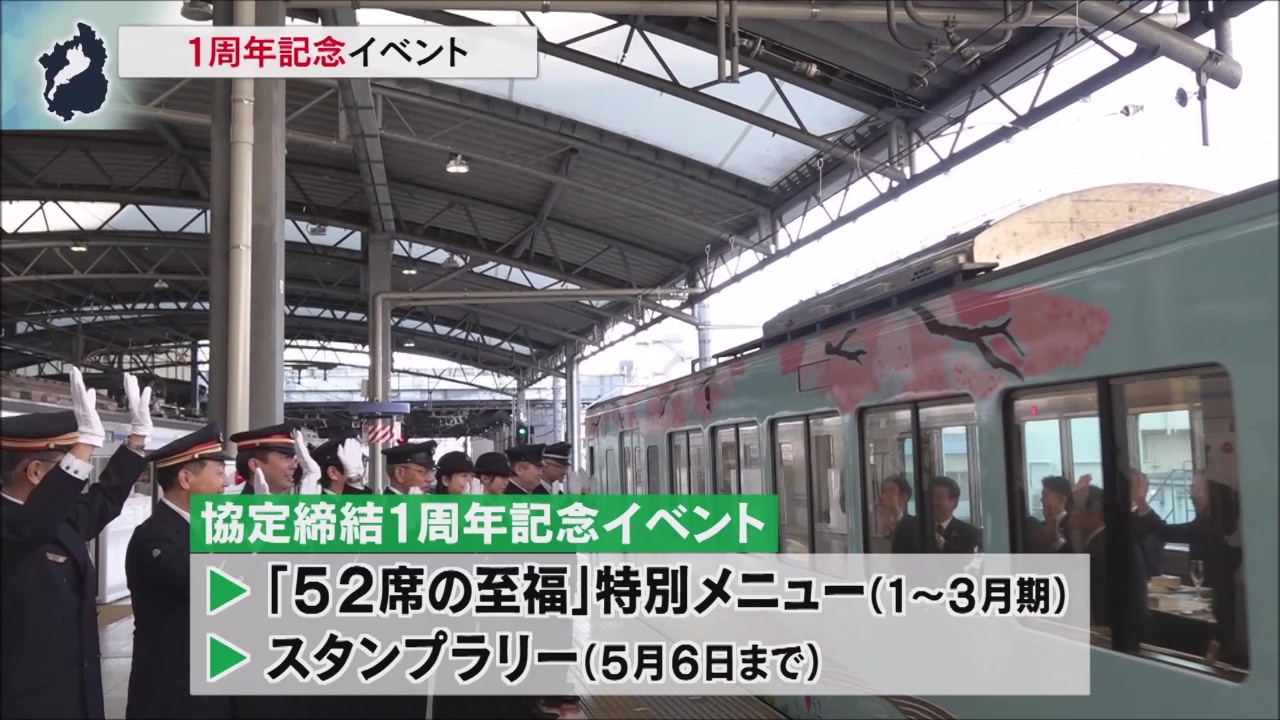 滋賀県産の食材を使った観光電車の特別メニューは3月まで提供されますが、今回の記念イベントでは西武鉄道や近江鉄道などを巡るスタンプラリーも5月まで行われます。