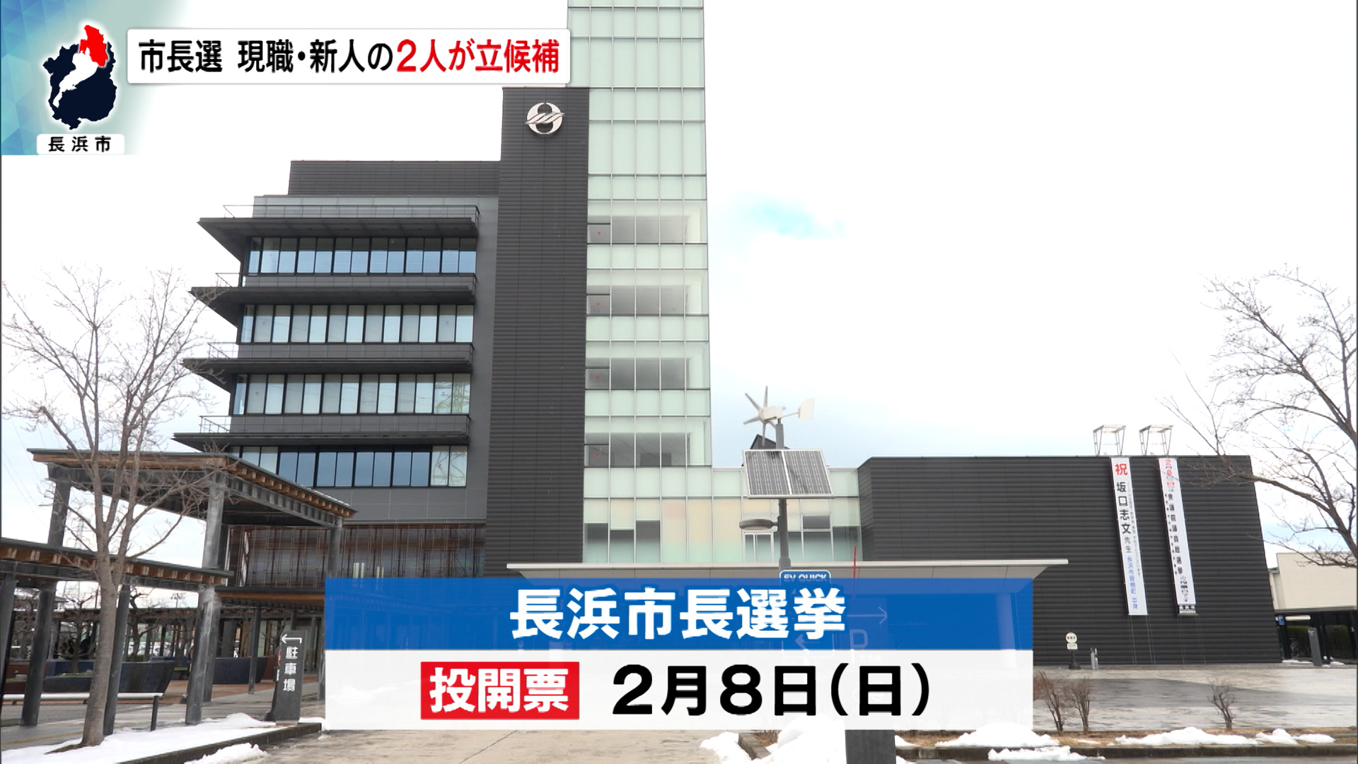 長浜市長選挙が告示 現職と新人の一騎打ちに