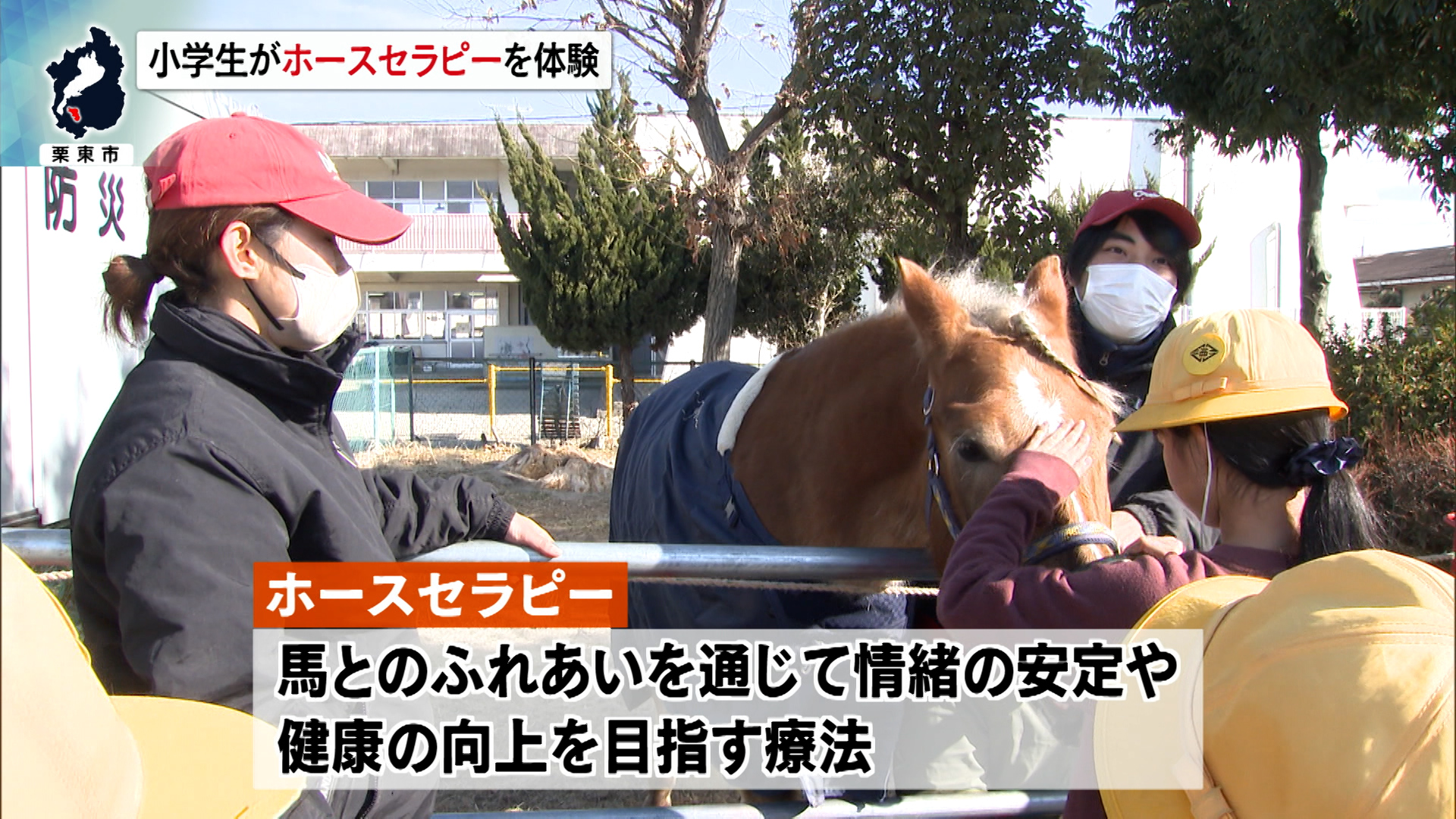 馬とのふれあい 栗東市の小学生がホースセラピーを体験