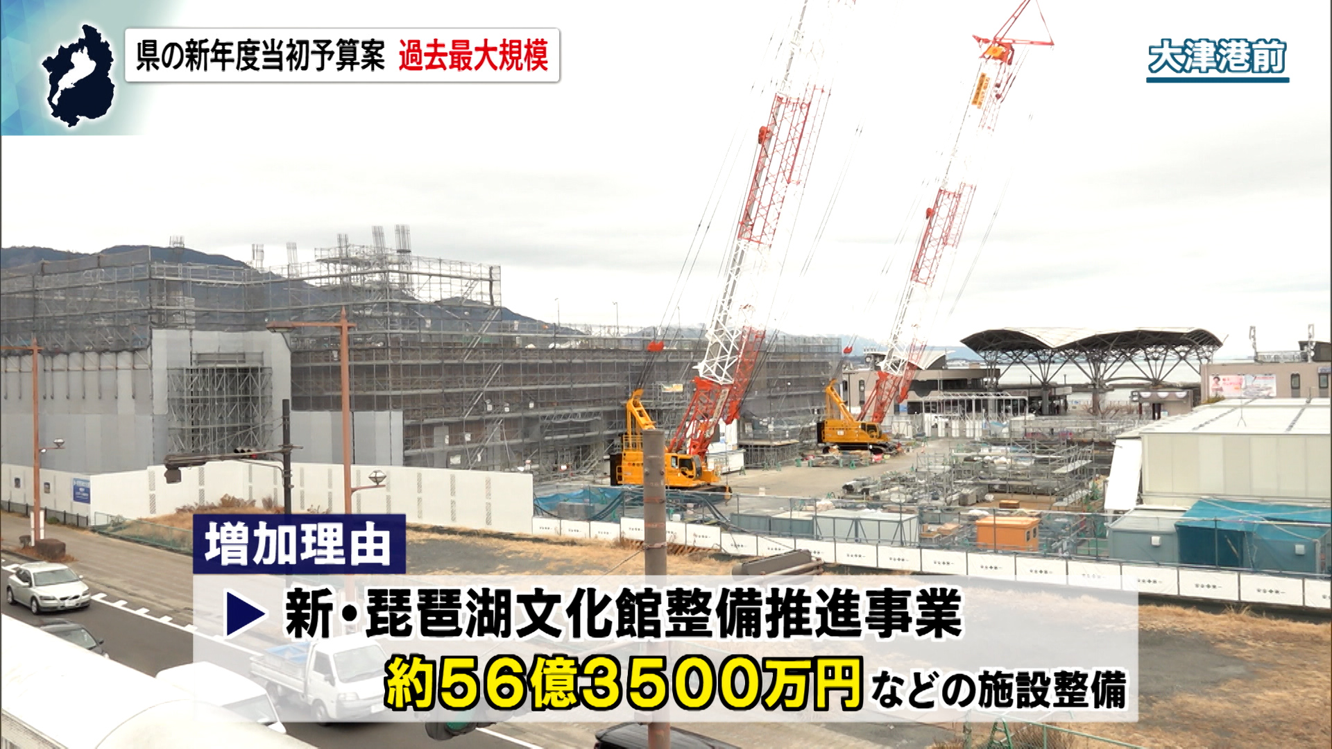 増えた理由については、人件費や社会保障関係経費などの義務的経費が増加したほか、新たな琵琶湖文化館の整備に56億3500万円といった施設整備費なども大きな要因です。