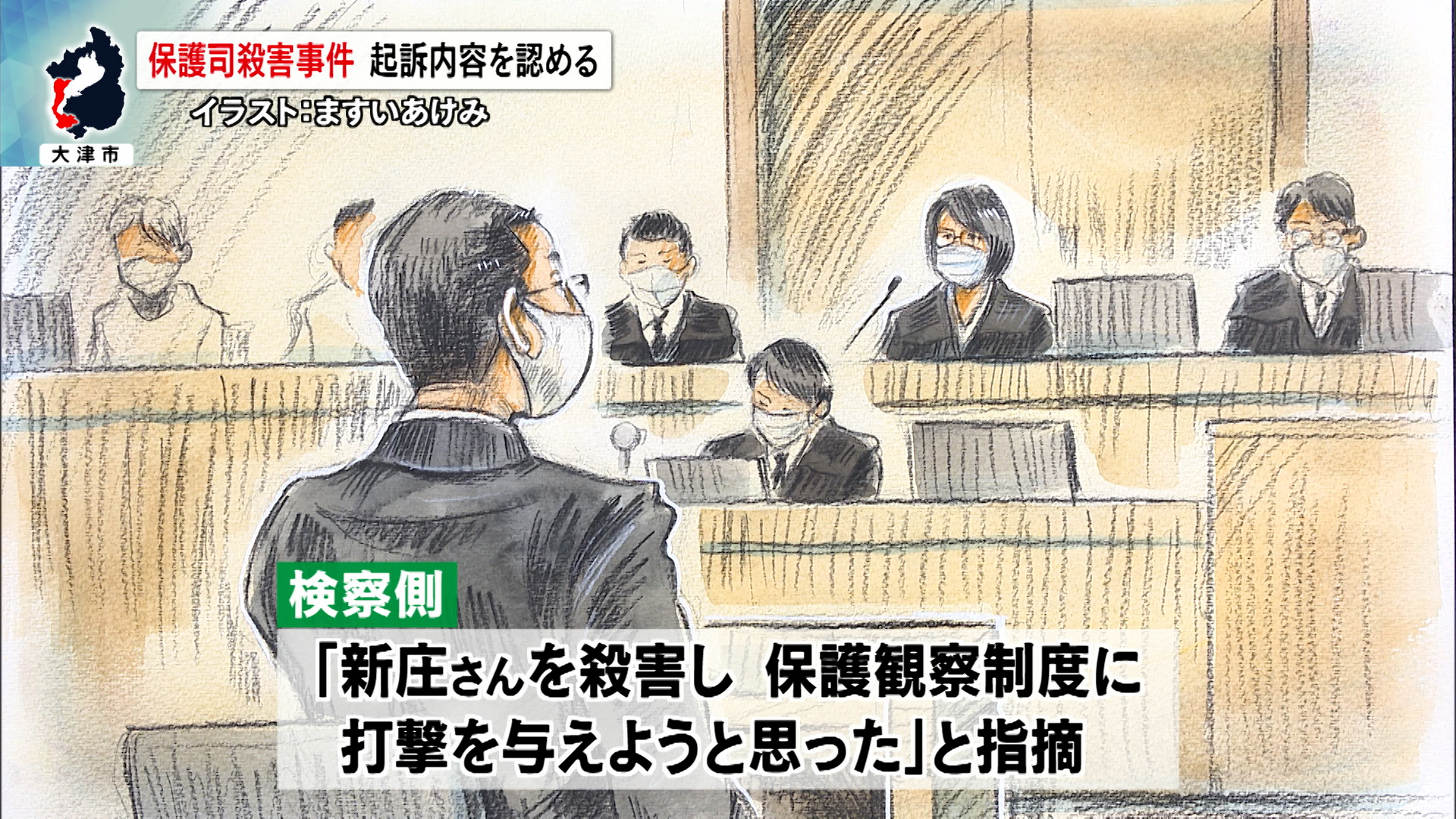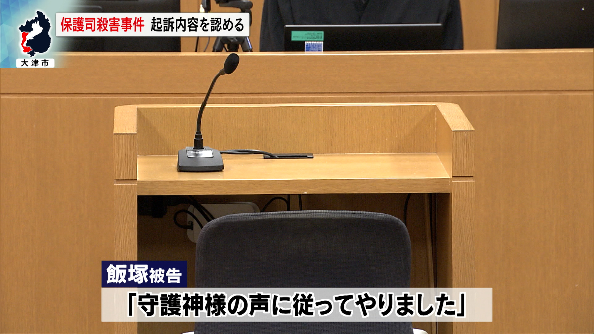 殺人などの罪に問われているのは、大津市の無職・飯塚紘平被告・36歳です。起訴状などによりますと、飯塚被告は執行猶予判決を受け保護観察中だった24年5月、大津市内の住宅で飯塚被告の更生を支援する担当保護司だった新庄博志さん・当時60歳の胸や首をナイフや斧で突き刺したり、斬りつけるなどして殺害したとされています。