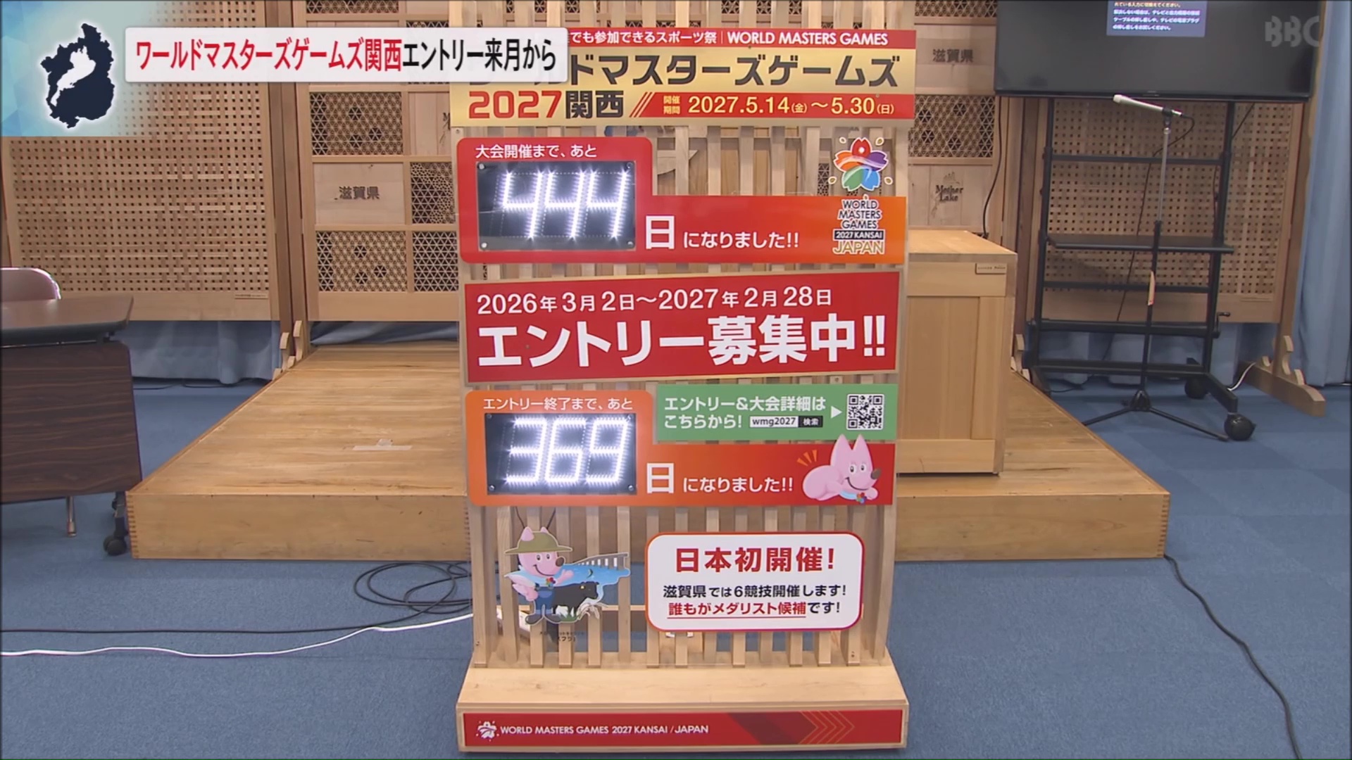ボードには、大会開催までの残り日数とともにエントリー期間がデジタルで表示されます。