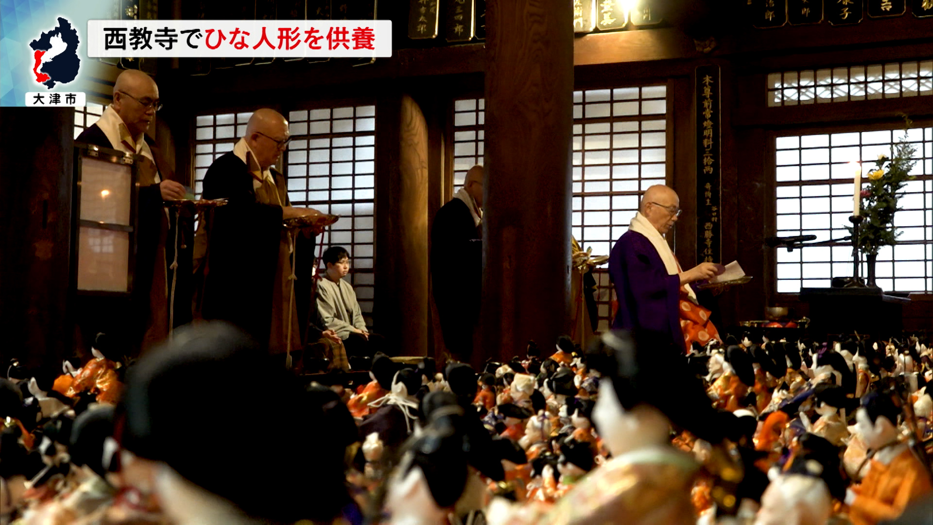 参列者は静かに手を合わせるなど、ひな人形に感謝の気持ちを伝えていました。供養されたひな人形は、3月8日まで、西教寺の本堂に飾られています。