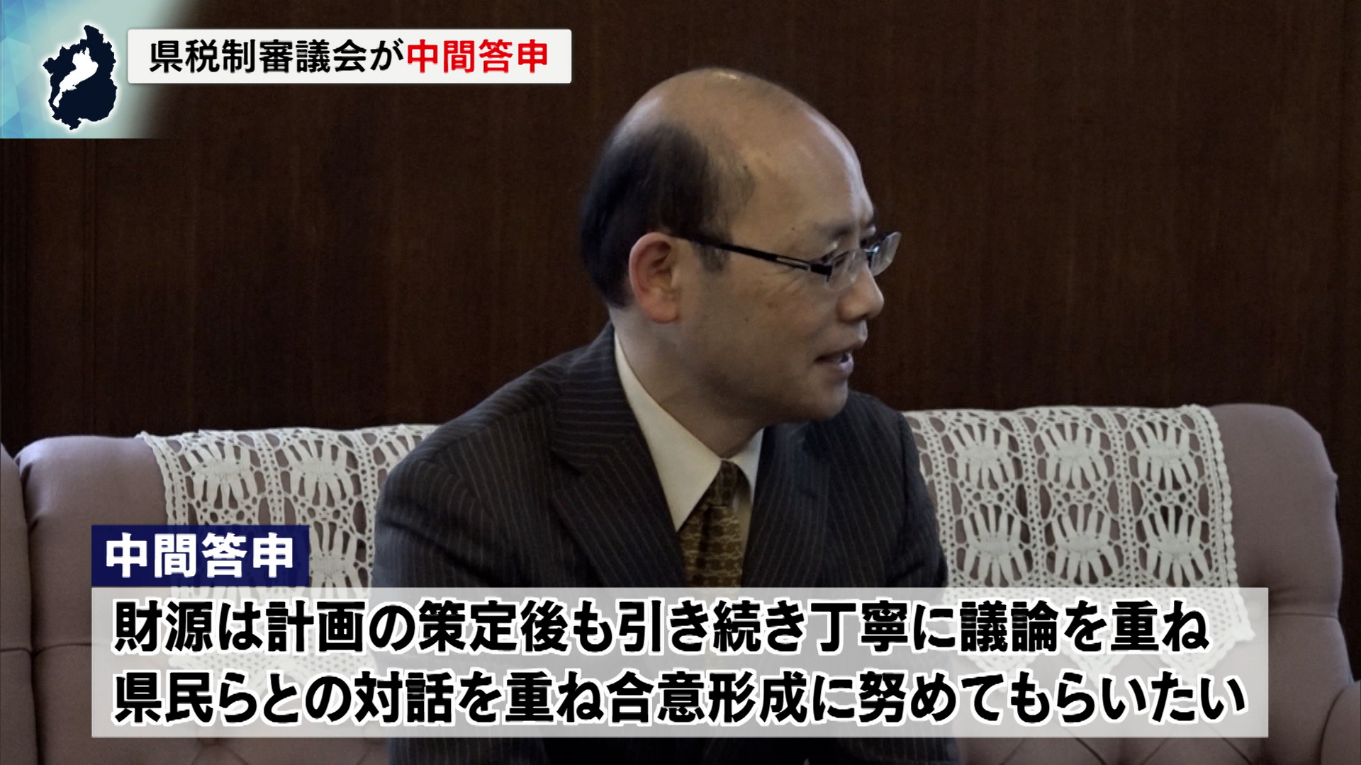 県が諮問した「みんなの移動を支え、暮らしを豊かにする新たな税のふさわしい制度」について、県税制審議会は4日、三日月知事に中間答申しました。