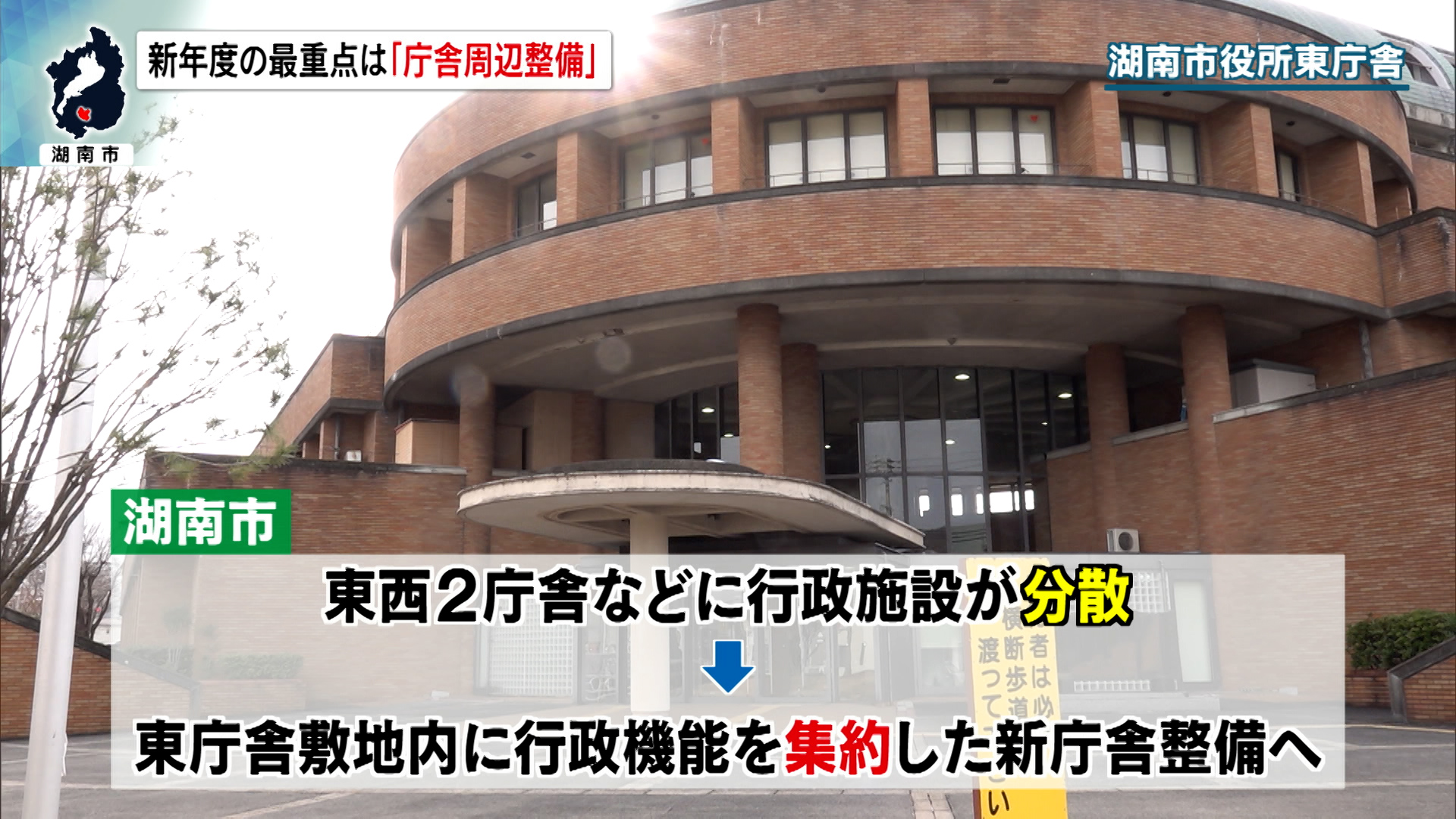 湖南市の新年度の当初予算案は、一般会計の総額が今年度よりも2.2%減った263億円で、過去2番目の規模となっています。その中でも、最重点事業としては「庁舎周辺整備」をあげています。