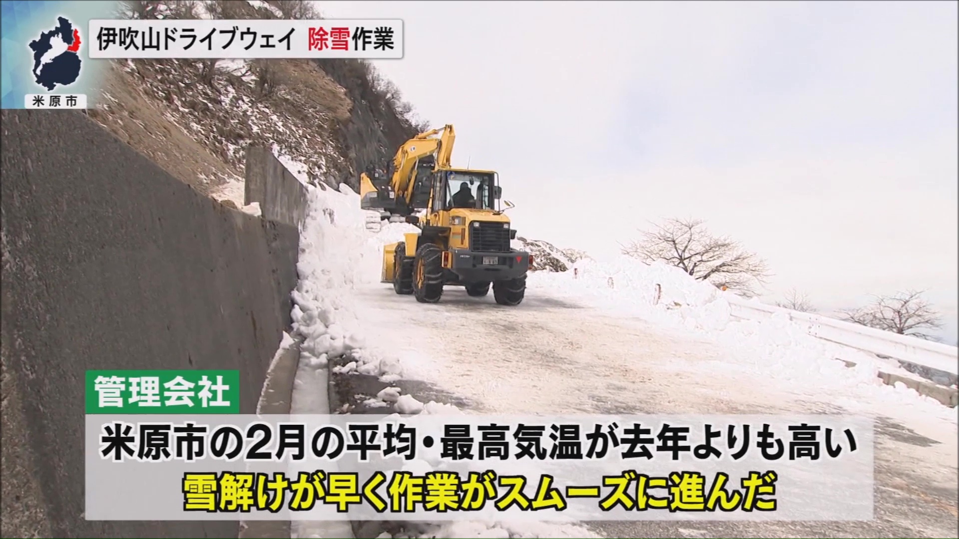 管理会社によりますと、今年は米原市の2月の平均・最高気温がともに去年よりも高かったことから、雪解けが早く、地表付近に固まった硬い雪もなかったため、作業がスムーズに進んだということです。