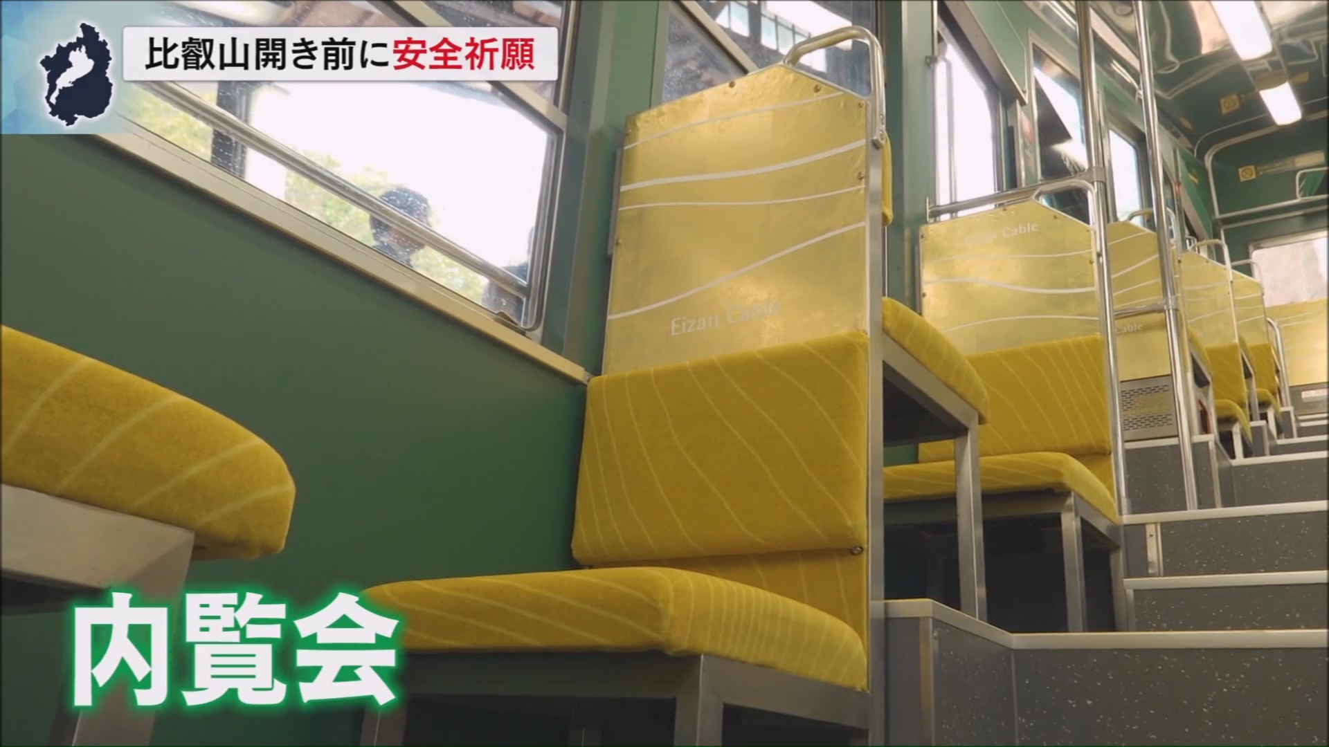 法要の後には、叡山ケーブル100周年を記念して内装が完全リニューアルされたケーブルカーの内覧会も開かれました。