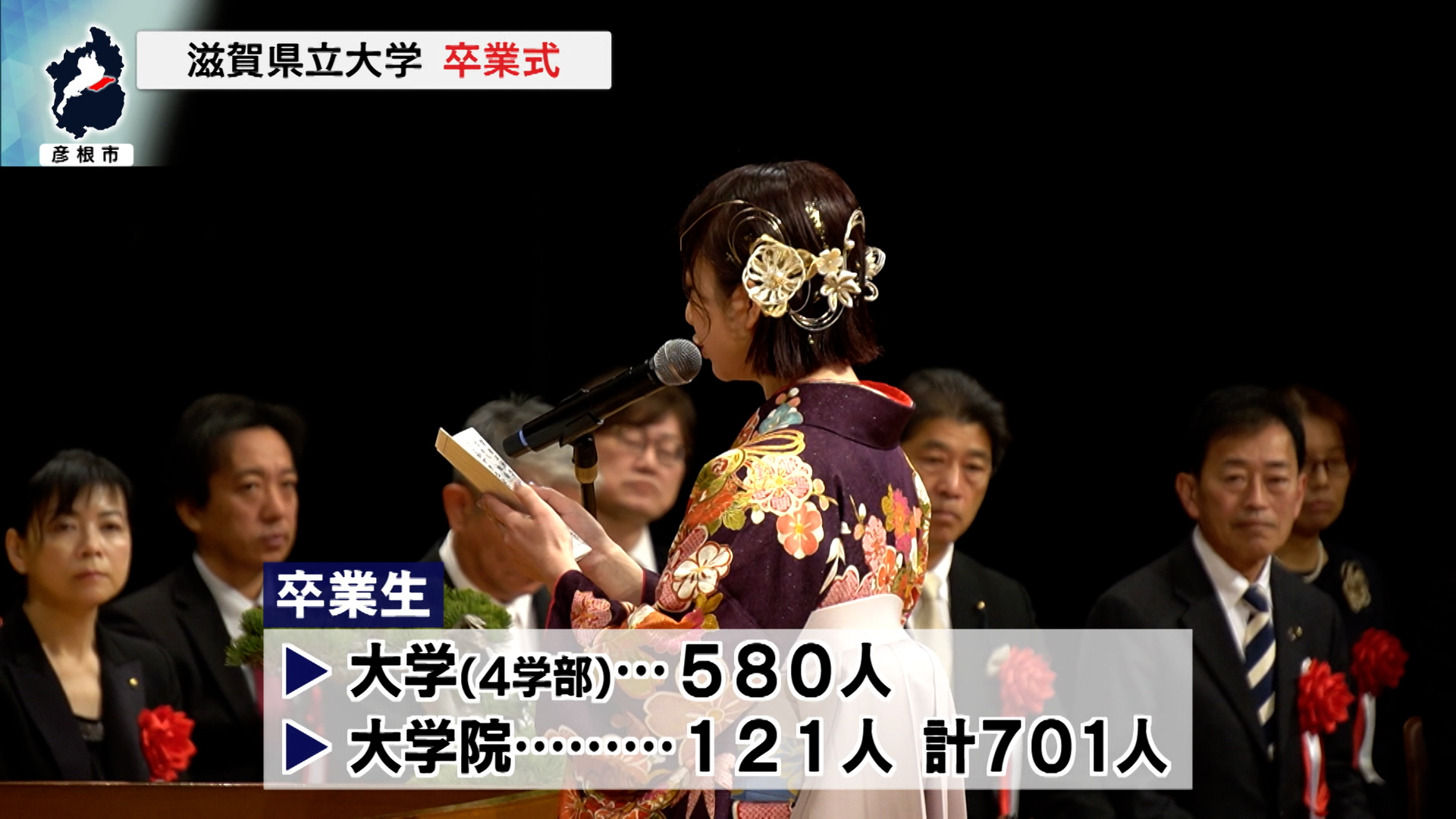 滋賀県立大学では、今年度、4つの学部で、あわせて580人が卒業。大学院では、121人が課程を修了したということです。